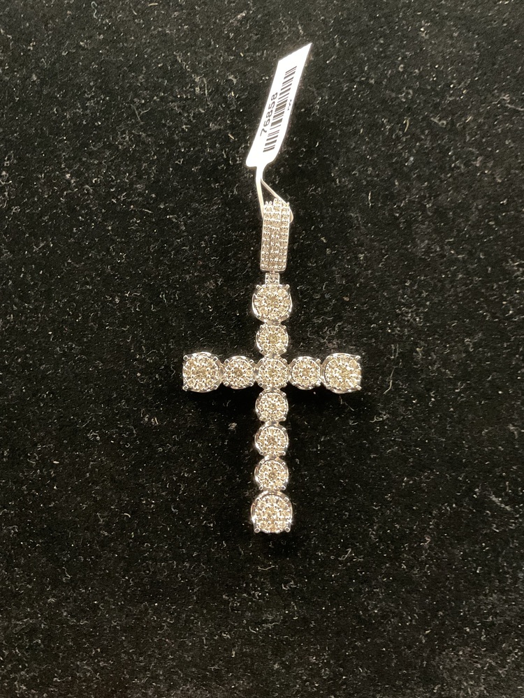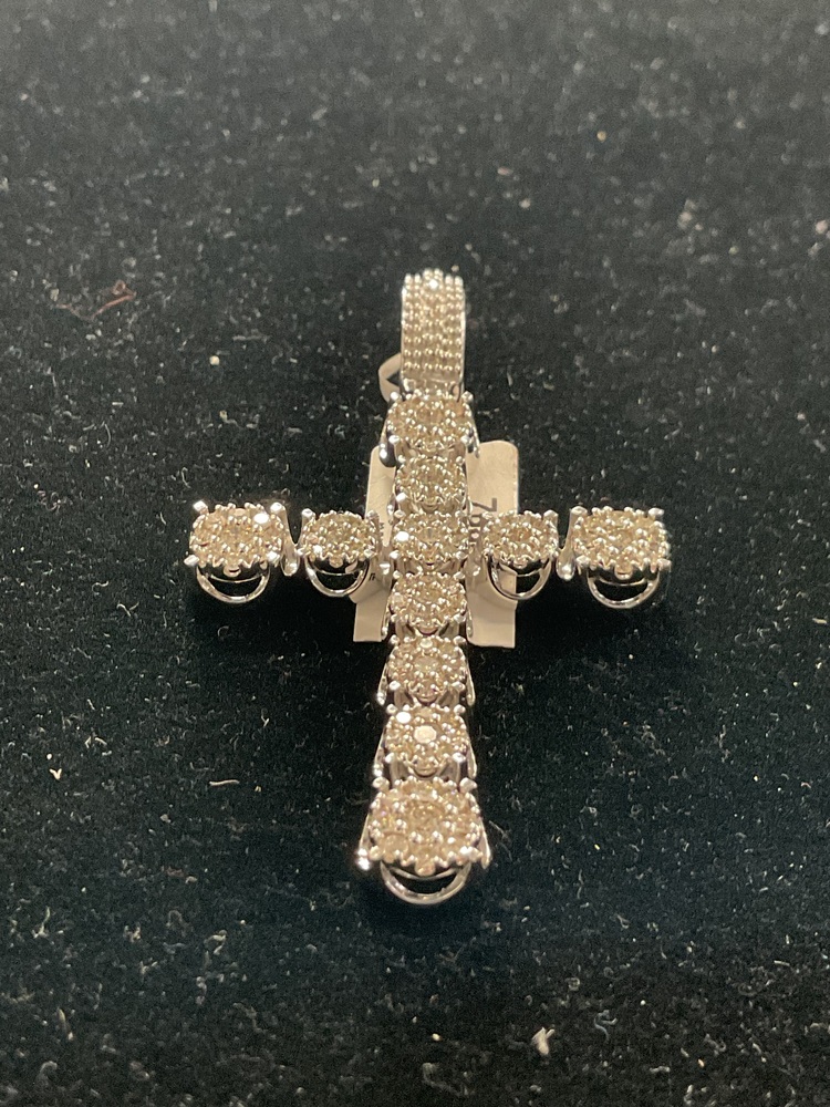 10k White Gold Diamond Cross Charm