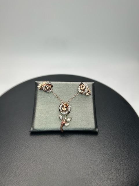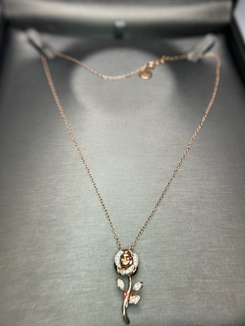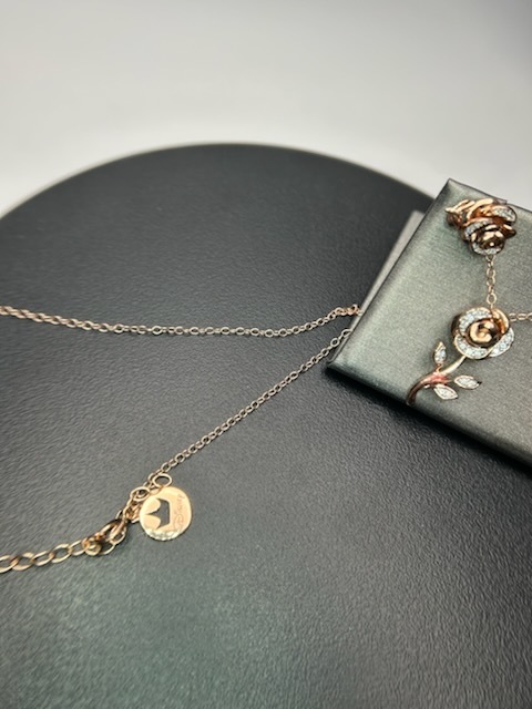 Enchanted Disney Belle Rose Gold Set With Adjustable Chain And Studs. Rose Gold With Diamond Chips 10k 8.0 G