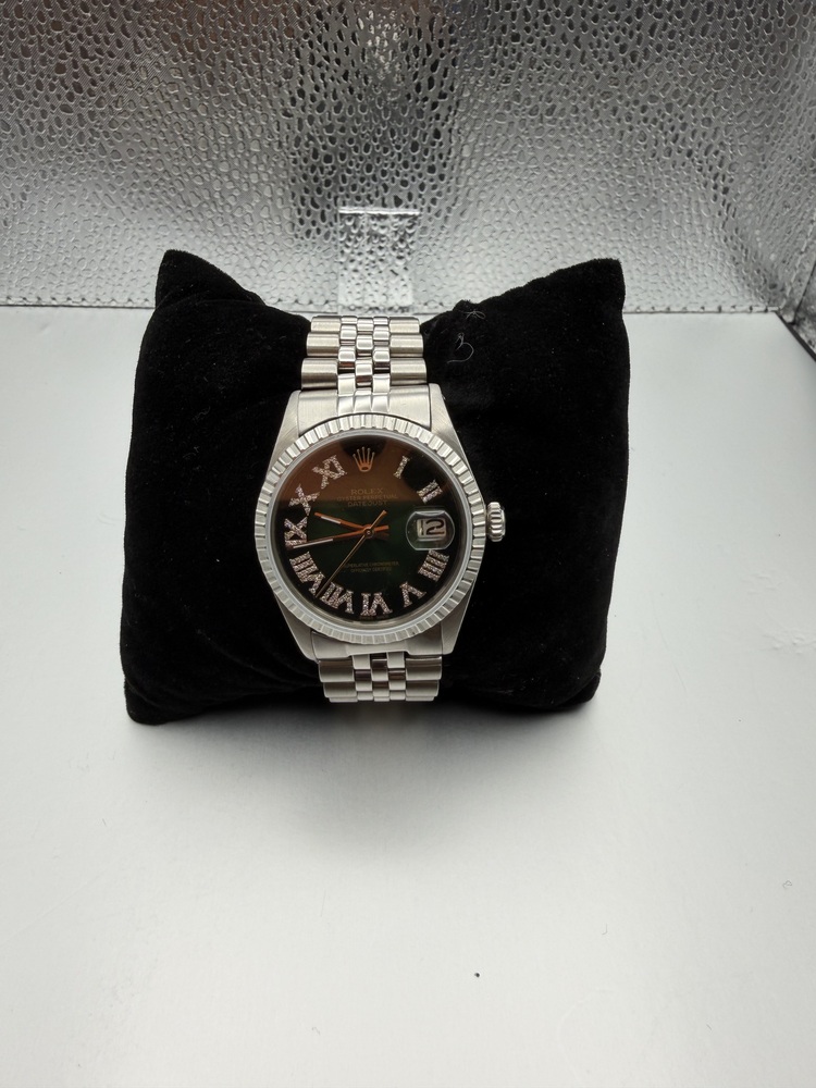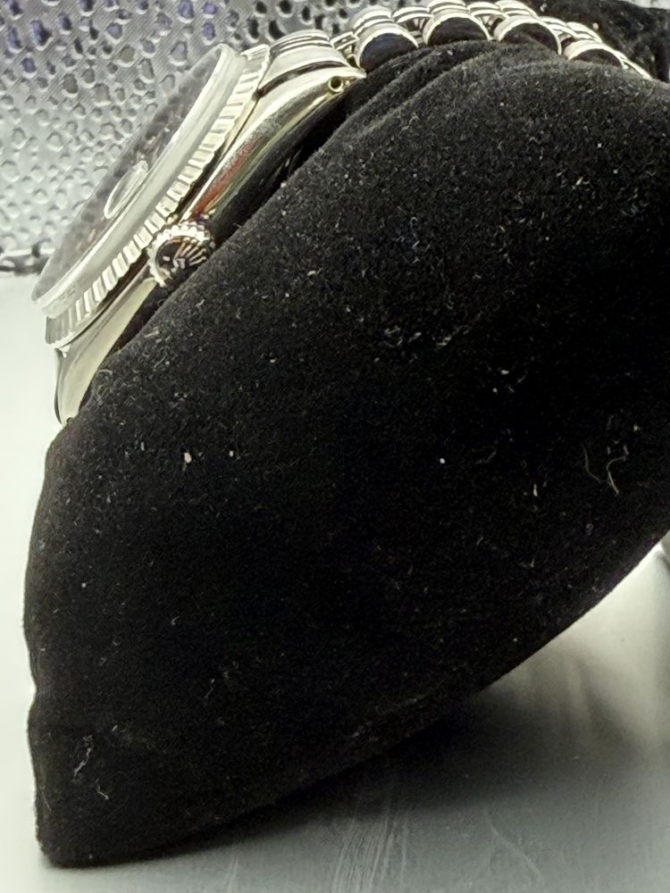 Pre-owned Rolex Datejust in very good condition. Normal cosmetic wear consistent with careful use. Crystal is clean with no major scratches. Bezel is crisp. Bracelet shows light wear and remains fully functional. Watch runs and keeps time. Please review all photos closely for exact condition.