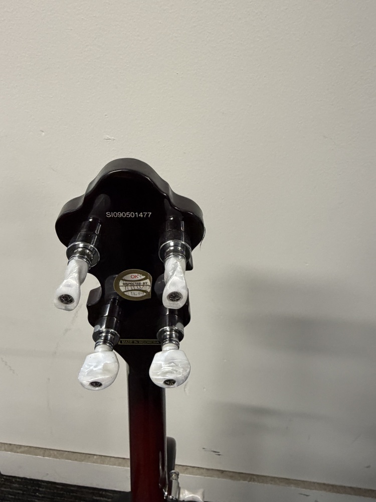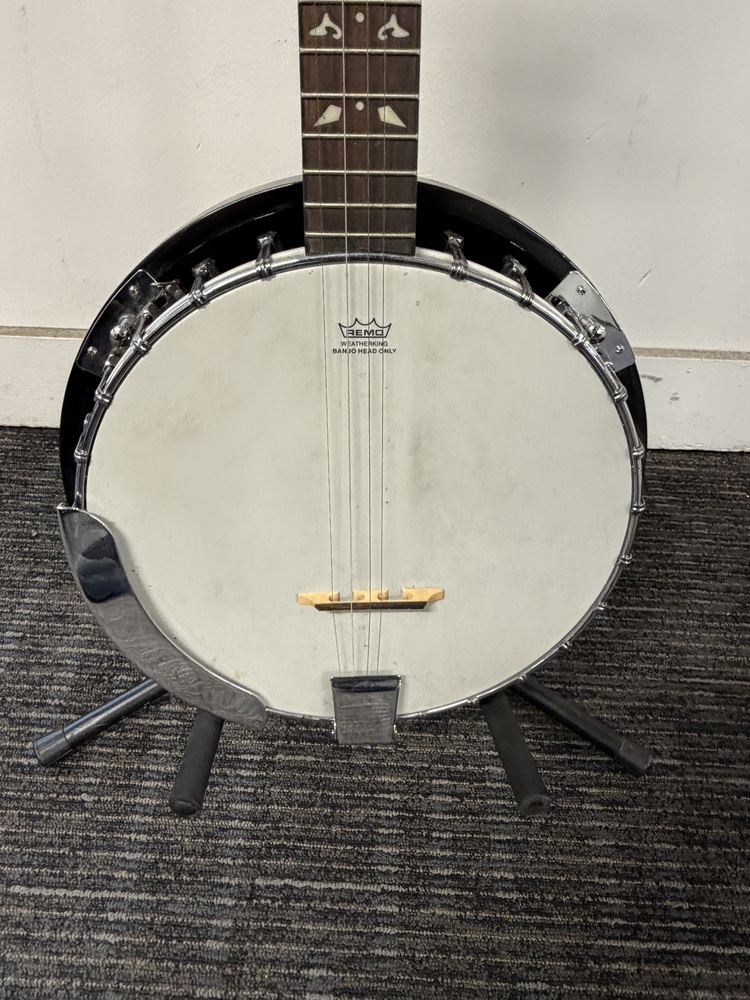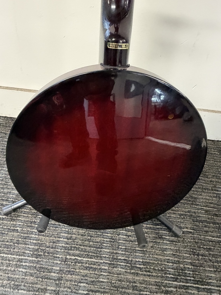 Overview Up for sale is a beautiful Samick SB-2 5-string banjo. Designed by Greg Bennett, this model is highly regarded for its build quality and tone relative to its price point. It features a stunning mahogany resonator with a deep cherry sunburst finish and a classic Remo Weatherking head.