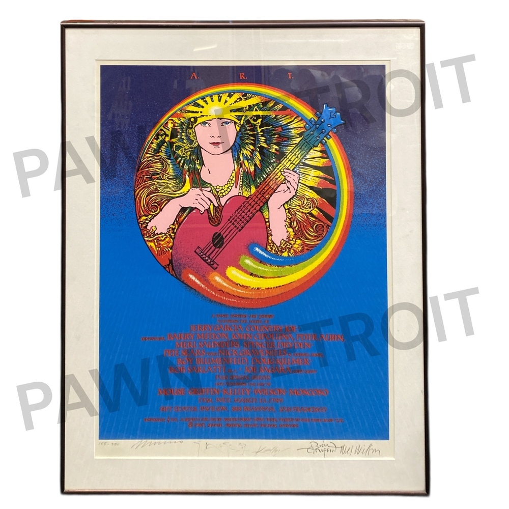 This is an original limited edition 1989 Artist Rights Today print featuring Jerry Garcia and signed by all five legendary San Francisco psychedelic poster artists—known collectively as the “Big Five.” This is one of the very few prints bearing all five signatures, making it exceptionally desirable for serious collectors.