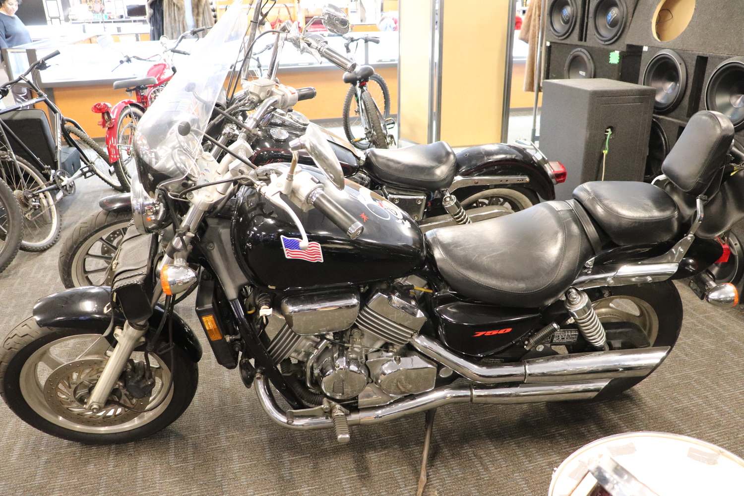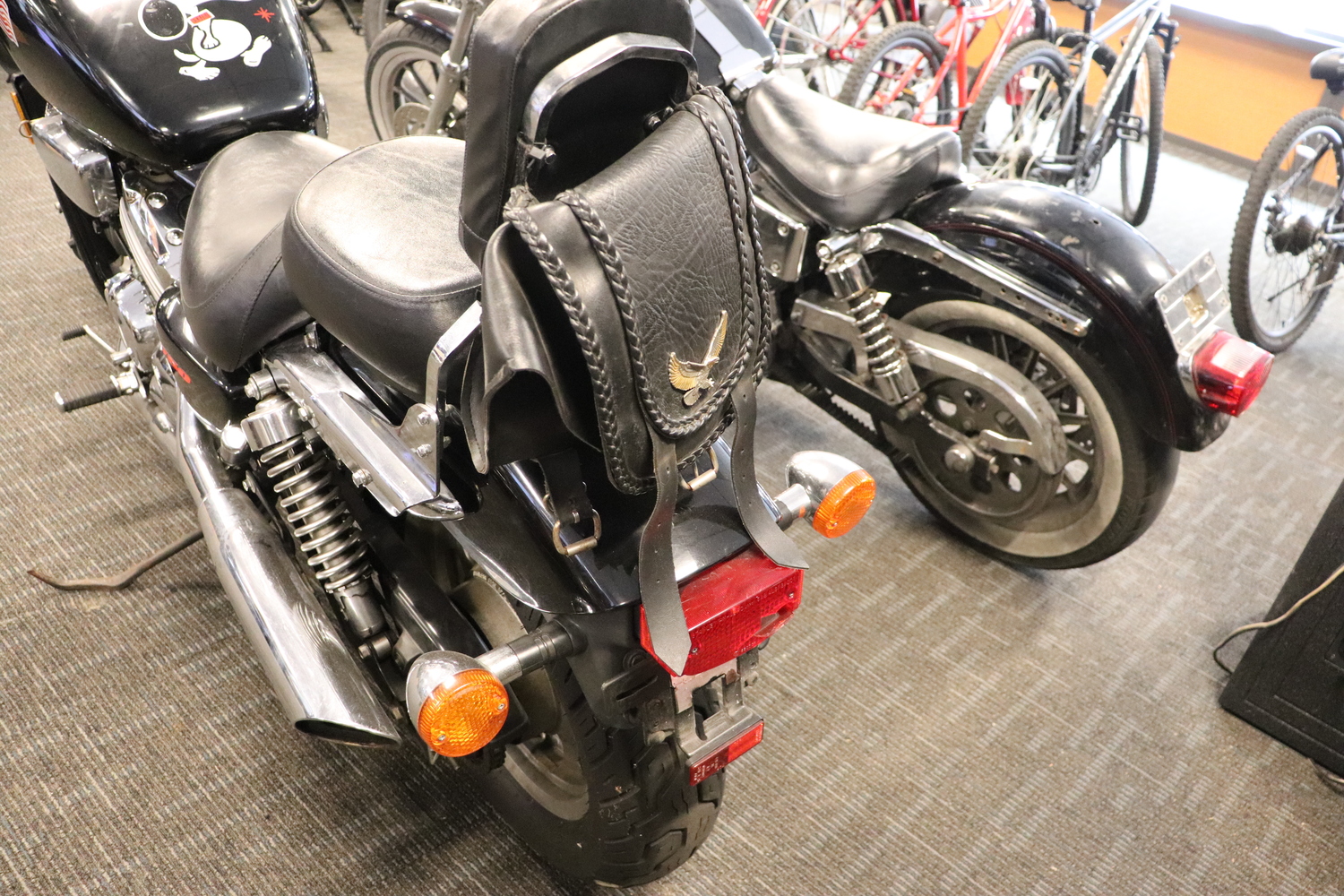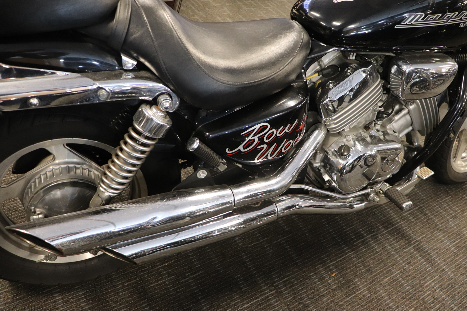 • Dual exhaust, mag wheels, front disc brake; two-piece seat with passenger backrest
