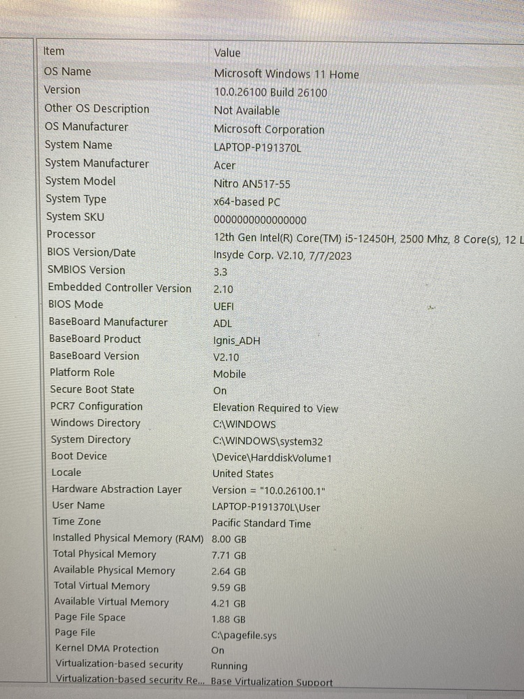 Processor: Intel Core i5-12450H (2.50GHz base frequency)