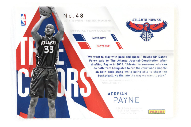 Offered here is a 2014 Panini True Colors Rookie Patch card of Adreian Payne. This is a low-serial example, numbered 01/25, making it an early print from a very limited run.