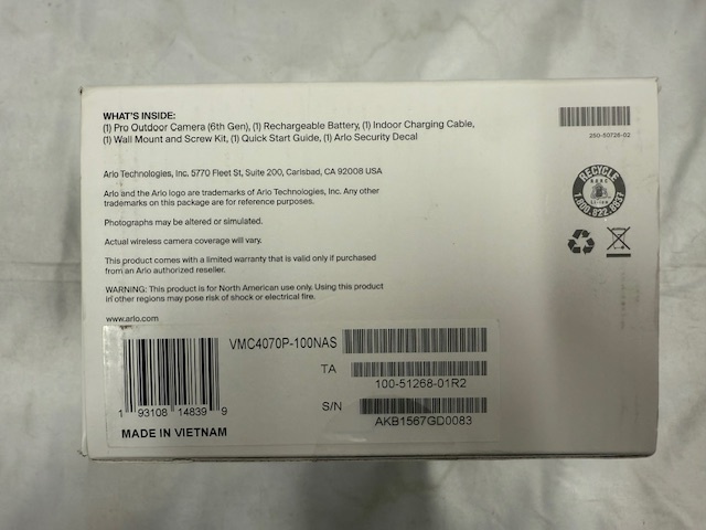 Pre-owned Arlo Pro 6th Gen Indoor Fixed Lens Dome IP Camera in fully working condition. Delivers 1080p HD video, night vision, two-way audio, and motion detection. Easy setup and compatible with smart home systems. Ideal for reliable indoor security monitoring.