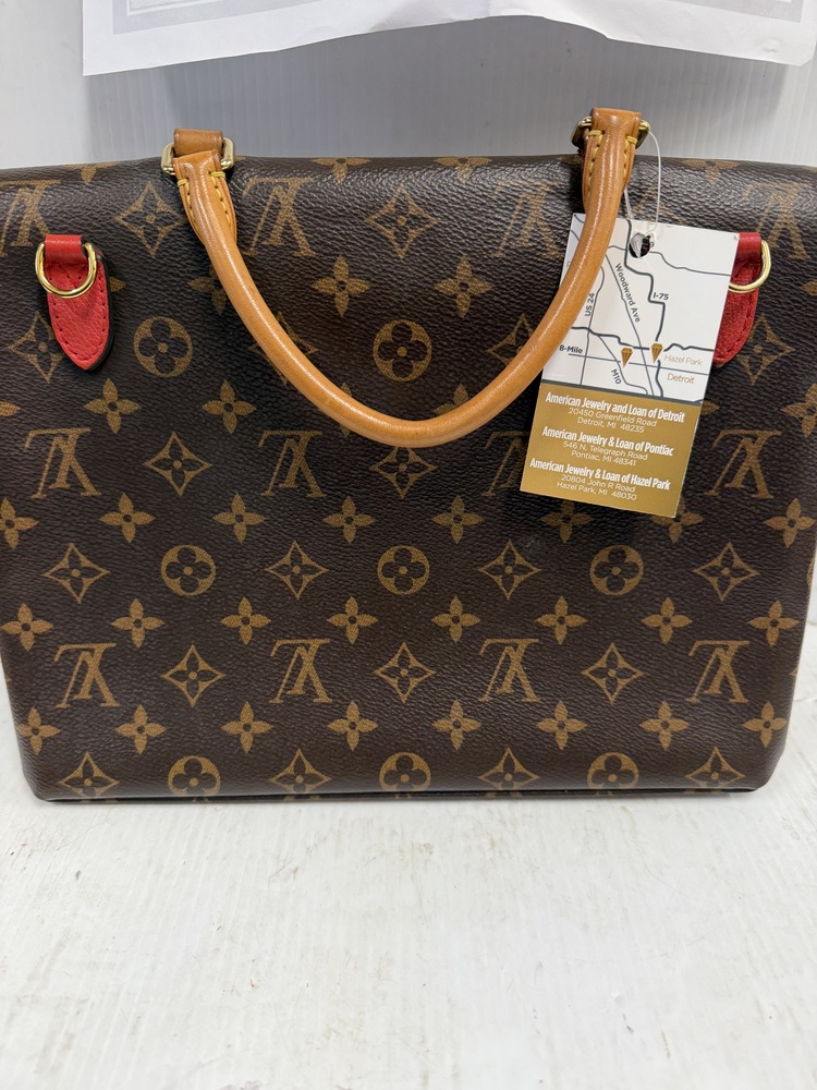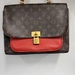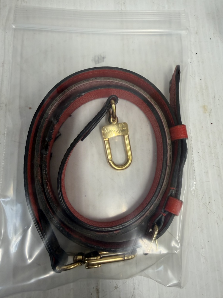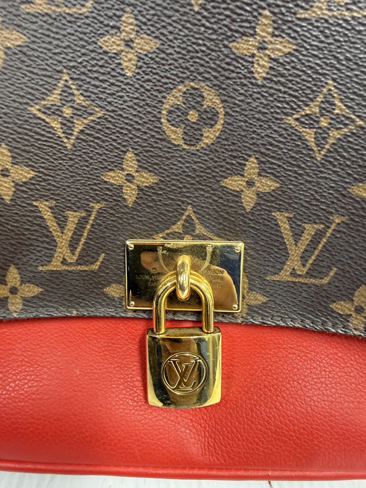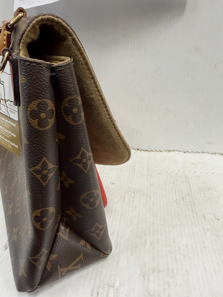 Authentic Louis Vuitton Monogram Canvas Shoulder Bag w/ Red Leather Accent & Strap