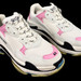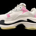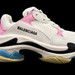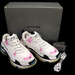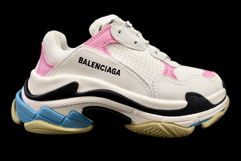 A standout in the sneaker world, the Balenciaga Triple S defines the modern “dad shoe” aesthetic with bold, layered design and sculpted color blocking. This Leather-Free Full Washed edition blends pink, white, and light blue tones over multi-material uppers and Balenciaga’s signature triple-stacked sole. A mix of technical mesh, synthetic overlays, and molded rubber combine for luxury comfort and statement-making style.