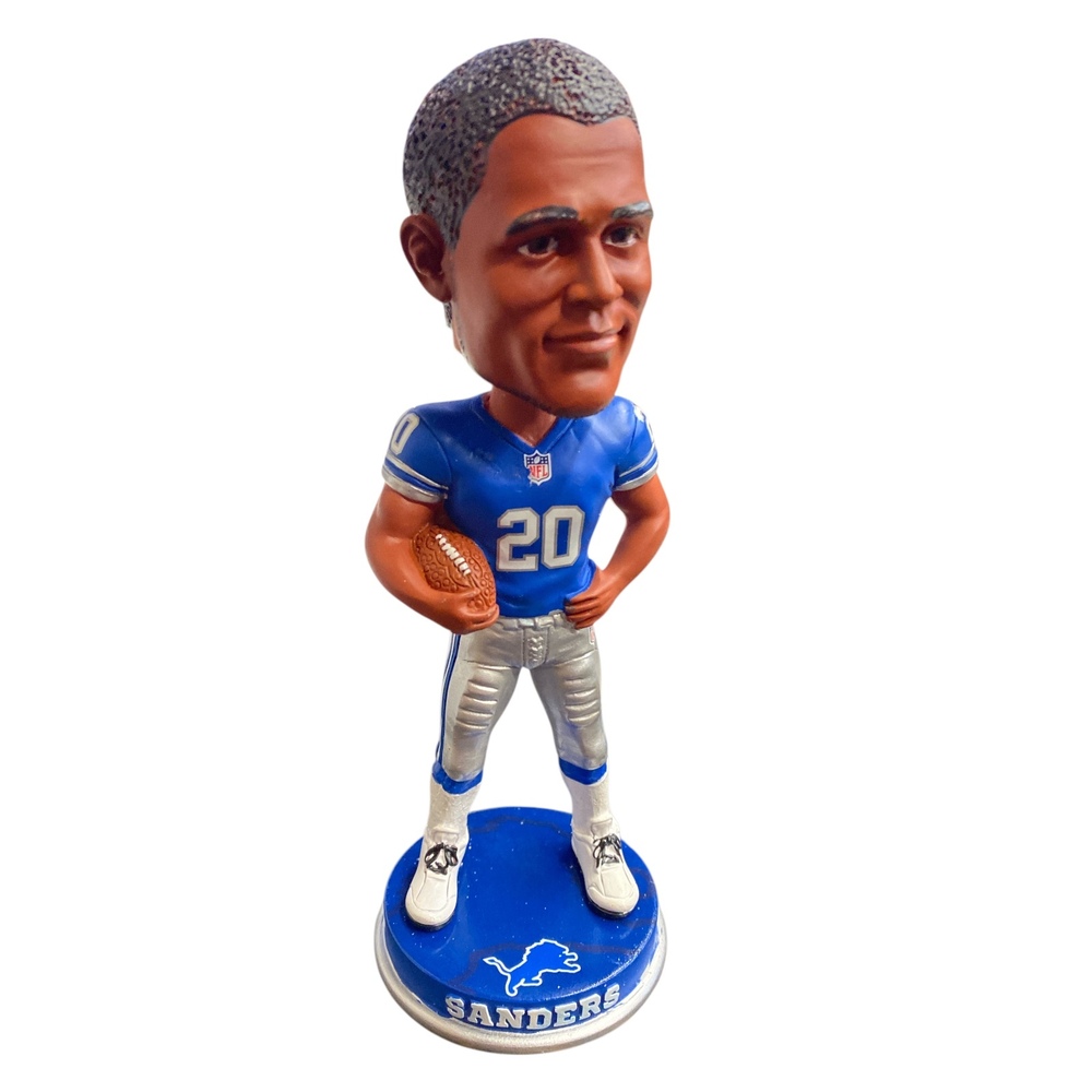 Up for sale is a Barry Sanders bobblehead by Forever Collectibles, featuring the legendary Detroit Lions running back. A perfect collectible for Lions fans and NFL memorabilia enthusiasts.