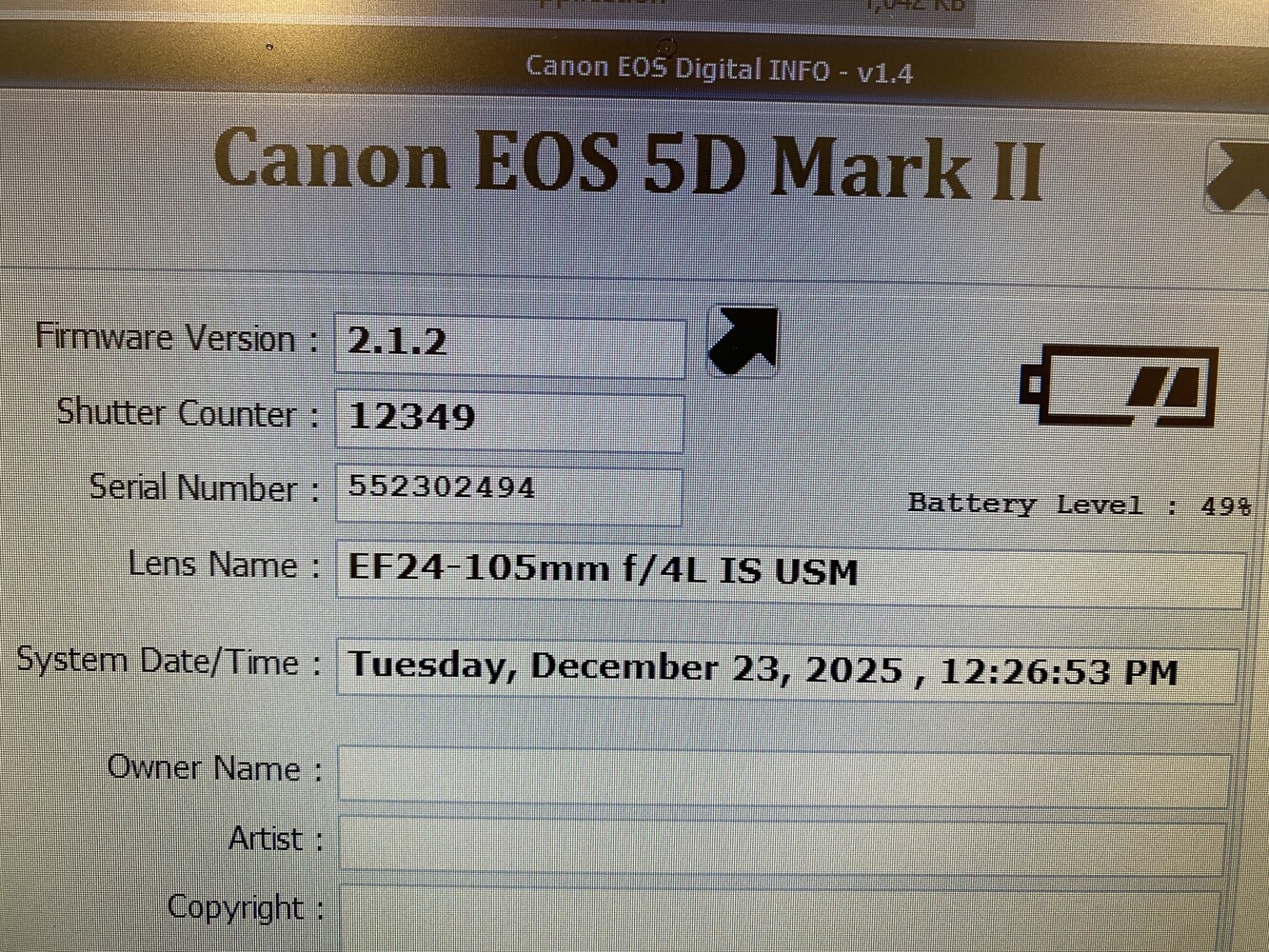 • Model: Canon EOS 5D Mark II