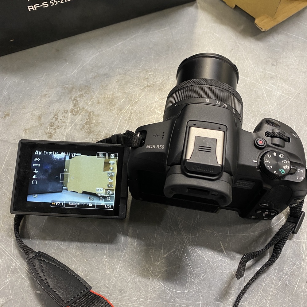 This listing is for a Canon EOS R50 mirrorless camera bundled with two versatile RF-S lenses: the Canon RF-S 18–45mm f/4.5–6.3 IS STM and the Canon RF-S 55–210mm f/5–7.1 IS STM. All items are in very good condition, fully functional, and well cared for. This is an ideal setup for travel, portraits, everyday photography, and video.