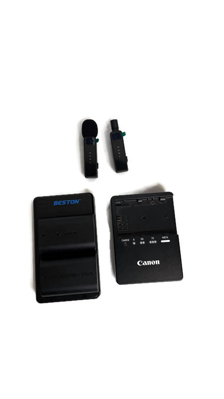 Comes with 1 lens, 3 batteries and 3 microphones, 2 chargers and a camera bag.