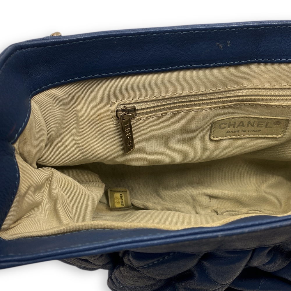 Exterior: Quilted lambskin, soft gathering, chain trim intact. In Very Good condition.
