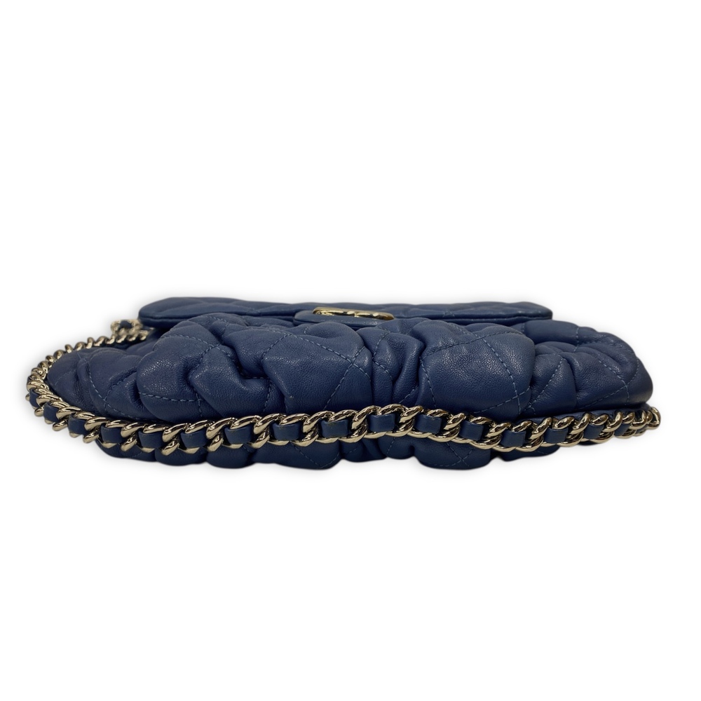 Exterior: Quilted lambskin, soft gathering, chain trim intact. In Very Good condition.