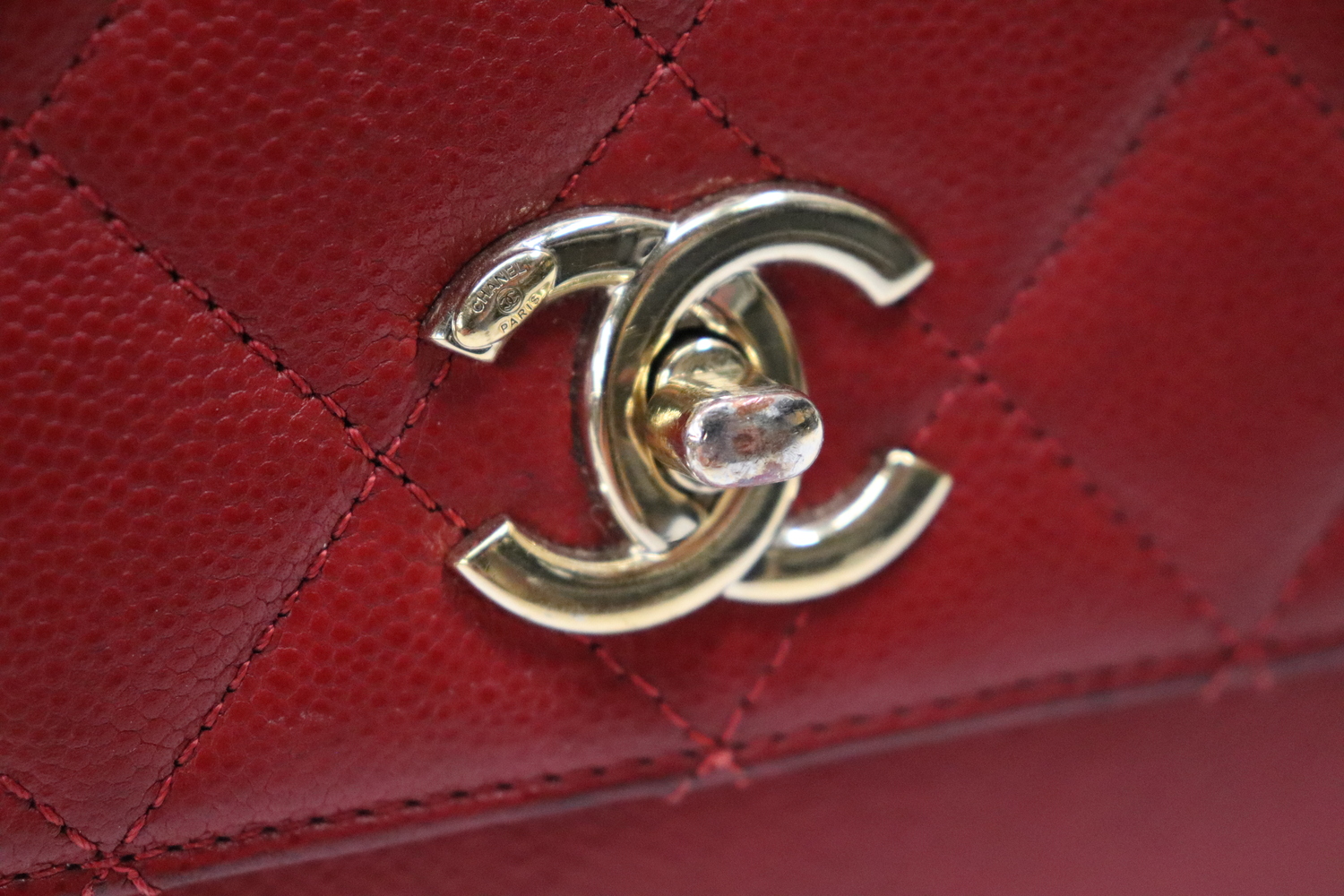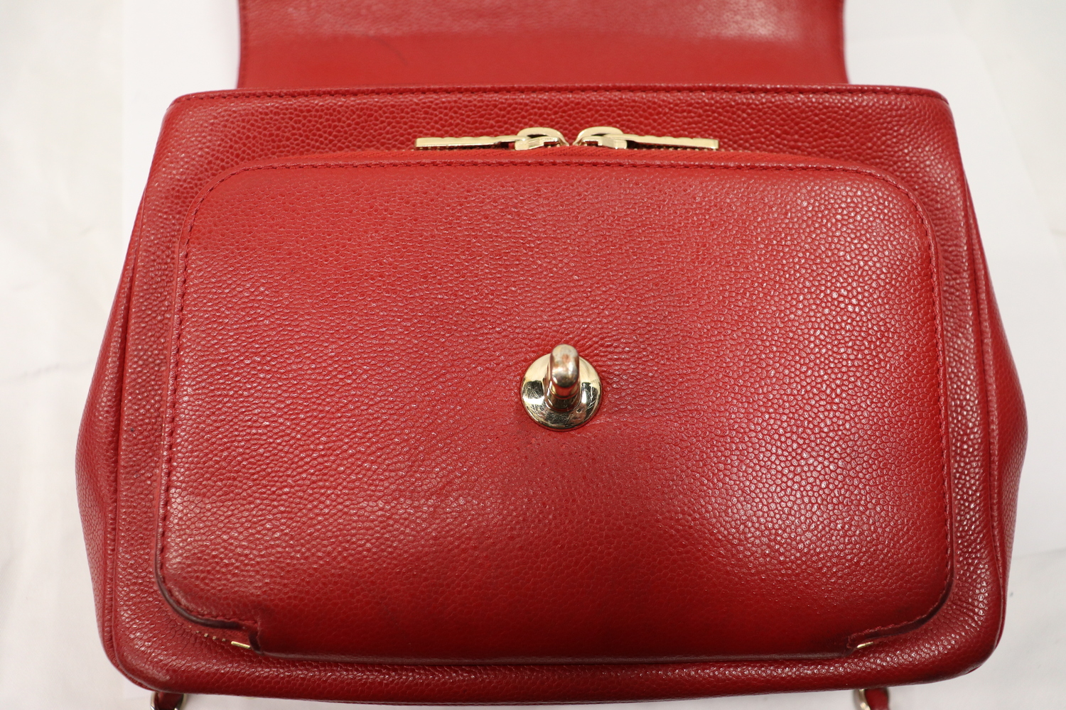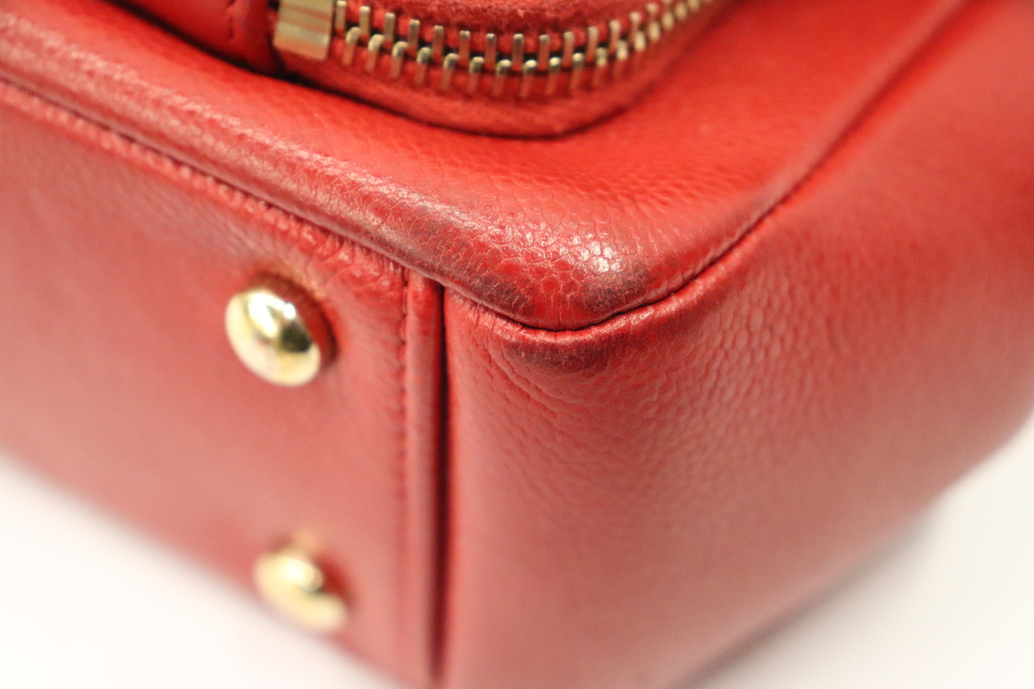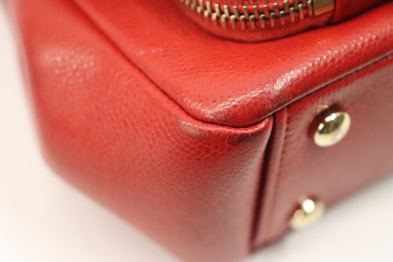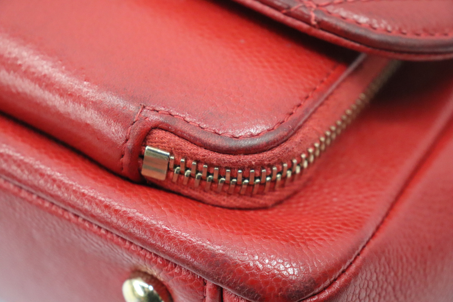 • Gold hardware wear with finish fully rubbed off front of turn lock