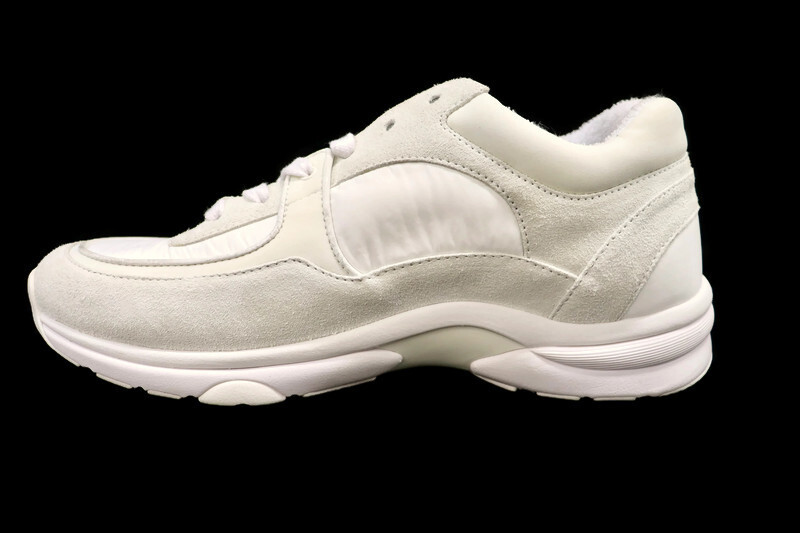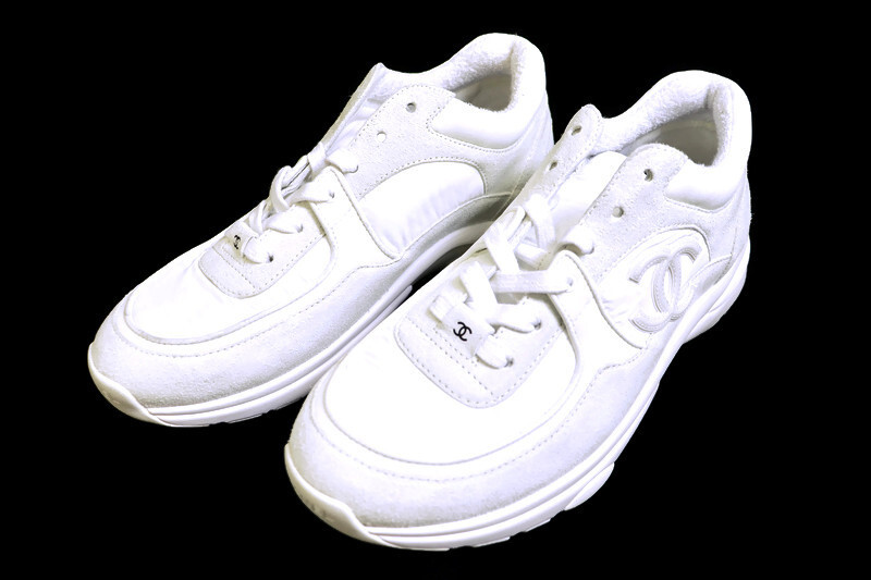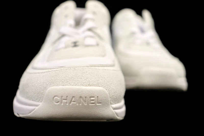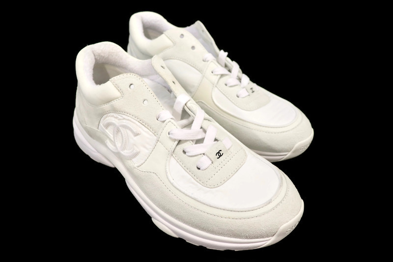 Refined, versatile, and unmistakably Chanel. These sneakers feature a luxurious combination of white suede and soft mixed-fabric panels with the signature interlocking CC logo at the sides. The silhouette blends sport-luxe styling with elevated craftsmanship- comfortable enough for everyday wear yet stylish enough for any casual-chic look.