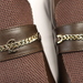 •  Silver-tone “CL” chain accent