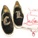 These slip-ons feature the classic Louboutin silhouette with tonal piping, padded collar, and the signature red rubber soles. The crystal monogram appliqués are vibrant, dimensional, and uniquely detailed- a collector-worthy twist on the Pik Boat style.