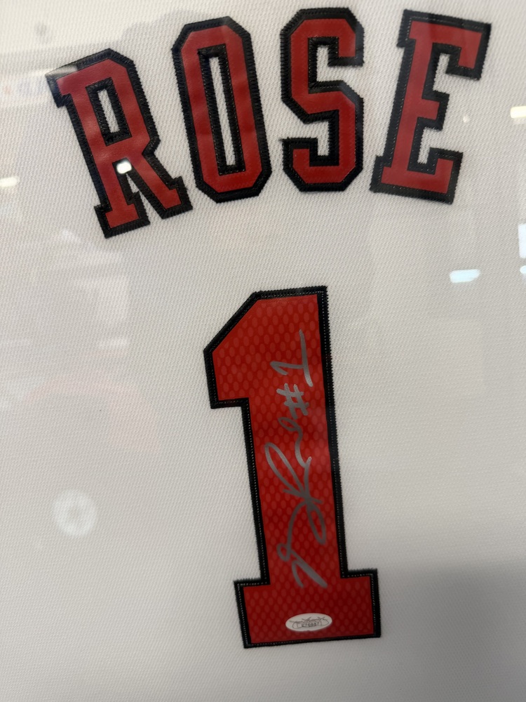 Featured: #1 Bull Jersry signed and worn by Derrick Rose himself.