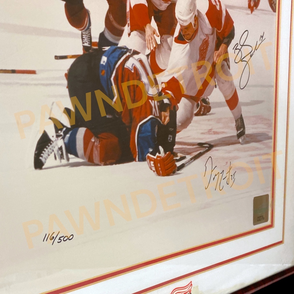 Elevate your hockey memorabilia collection with this Detroit Red Wings NHL Darren McCarty & Brendan Shanahan Signed Framed Photo. This professionally framed display showcases two iconic Red Wings players whose grit, leadership, and on-ice intensity helped define an era of championship hockey in Detroit.