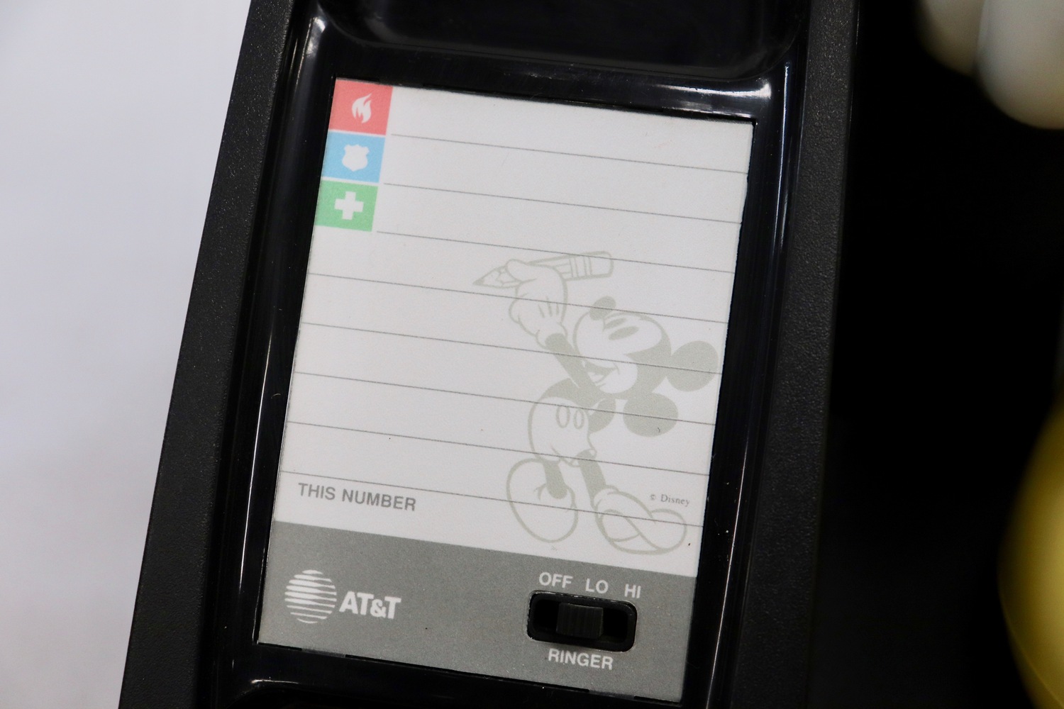 Up for sale is a Disney Mickey Mouse AT&T landline telephone, a fun and eye-catching piece that blends classic Disney character design with retro home phone style.