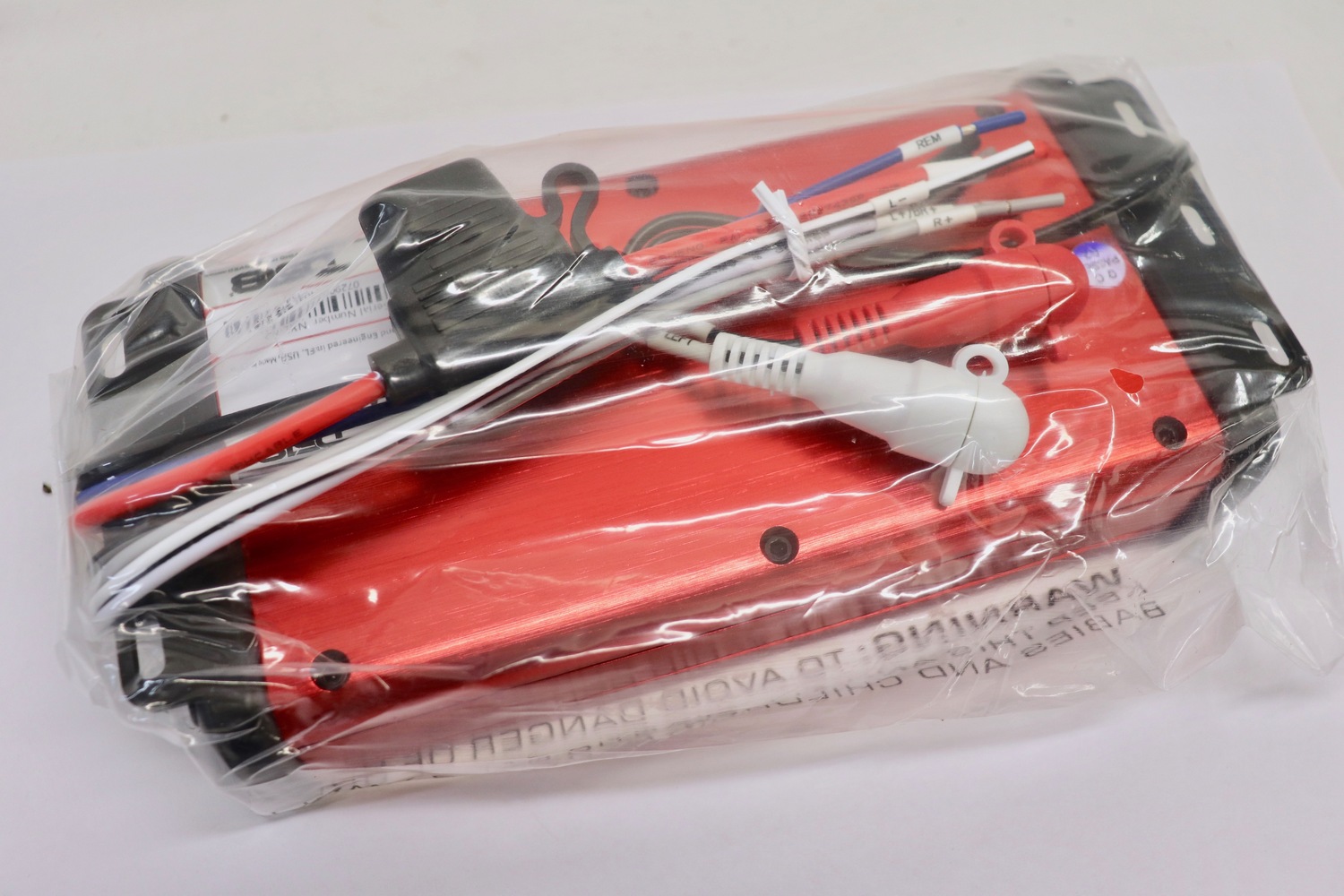 Open-box DS18 NXL-N2 Ultra Compact Waterproof Stereo Amplifier. This unit has never been installed or used and remains wrapped in original protective packaging with all included components.