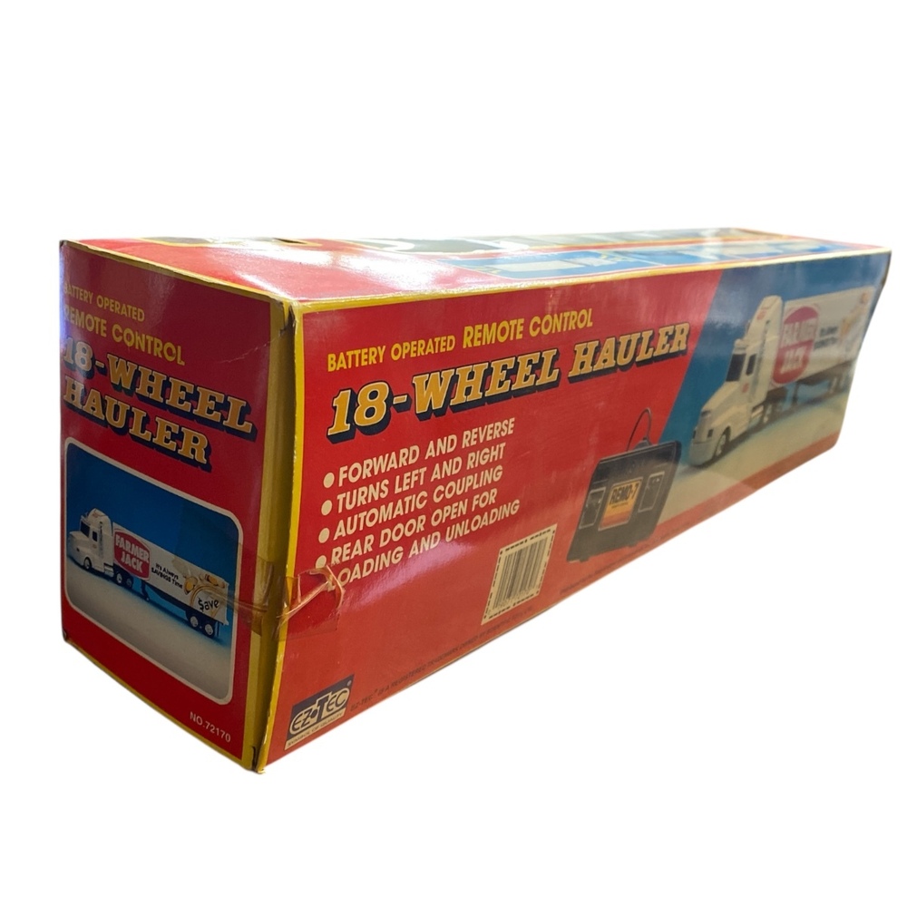 Up for sale is a EZTEC Farmer Jack 18-Wheel Hauler battery-operated remote control semi-truck. This is a large-scale RC vehicle with detailed design and wireless remote control functionality.