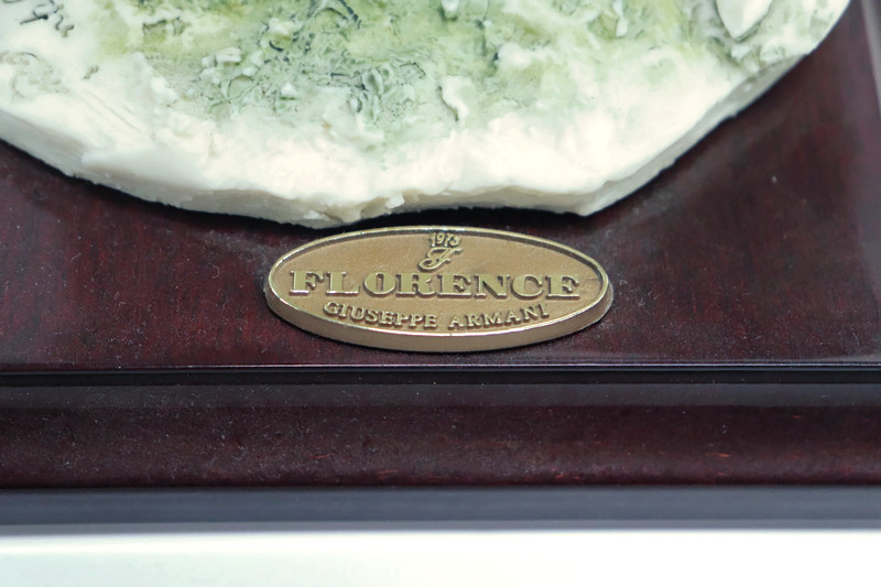 •  Material: Hand-painted porcelain, mounted on wood base with brass Florence plaque