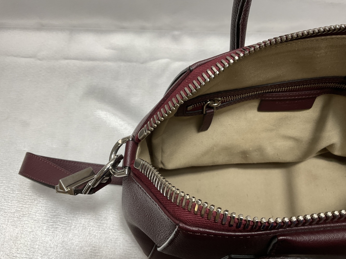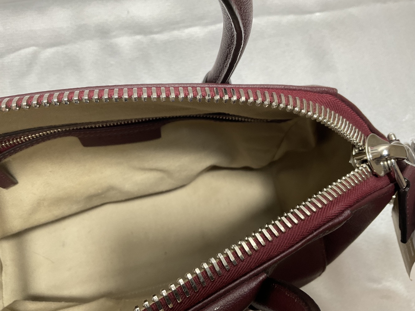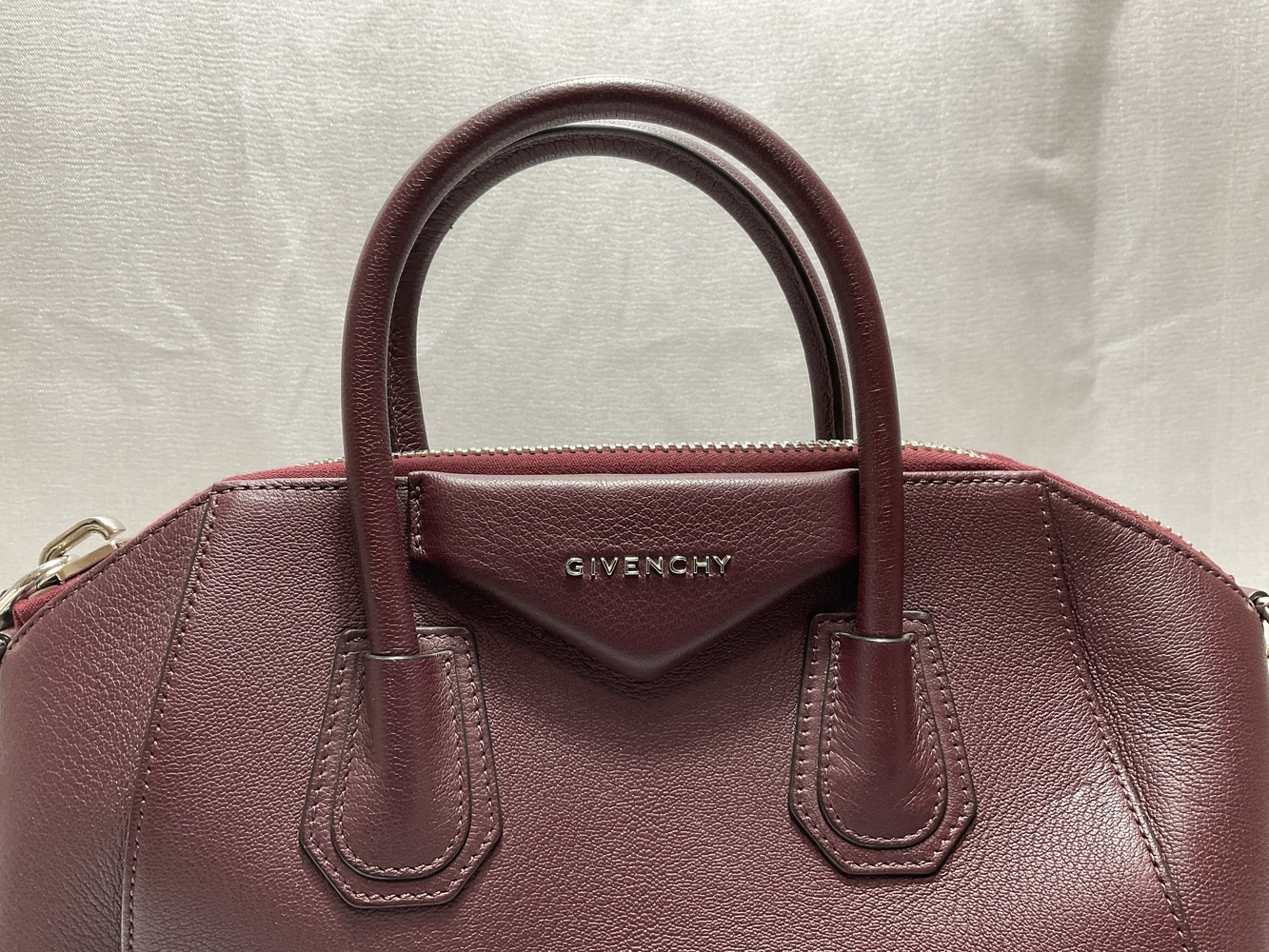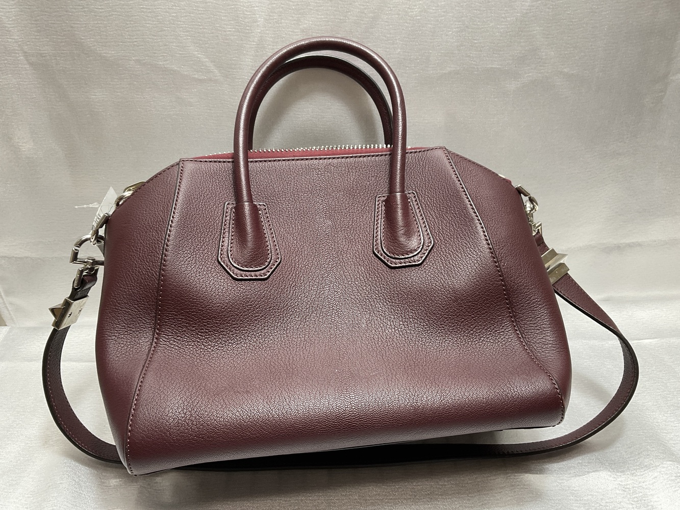 Crimson delight, the Givenchy Antigona Satchel indulges in an elegant dance of opulence. Bathed in Oxblood dye, this burgundy masterpiece, handcrafted from grained goatskin leather, whispers prestige. Not just a bag, but an intimate ally in your fashion journey. Elevate your style, live the charm, in limited edition luxury.