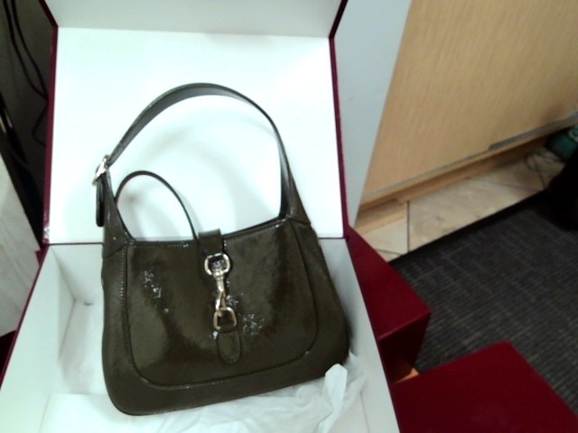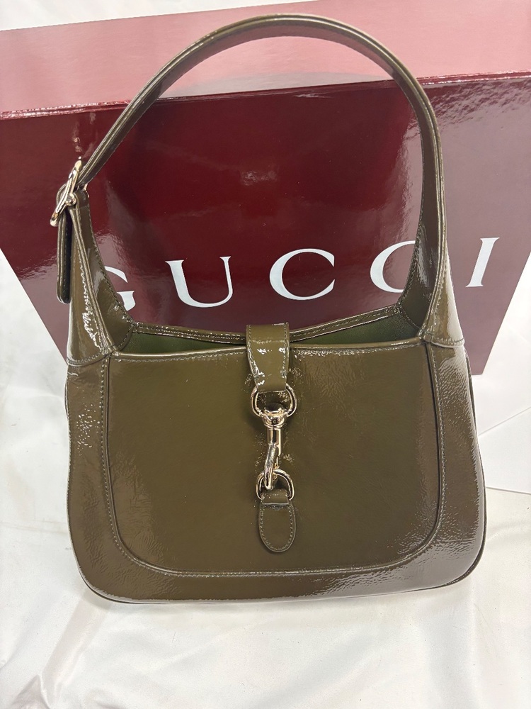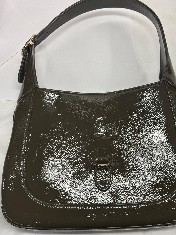 Hand Bag Apparel GUCCI 782849 FOREST GREEN PATENT LEATHER SHOULDER W/ LONG CLOTH STRAP ID: 1873181