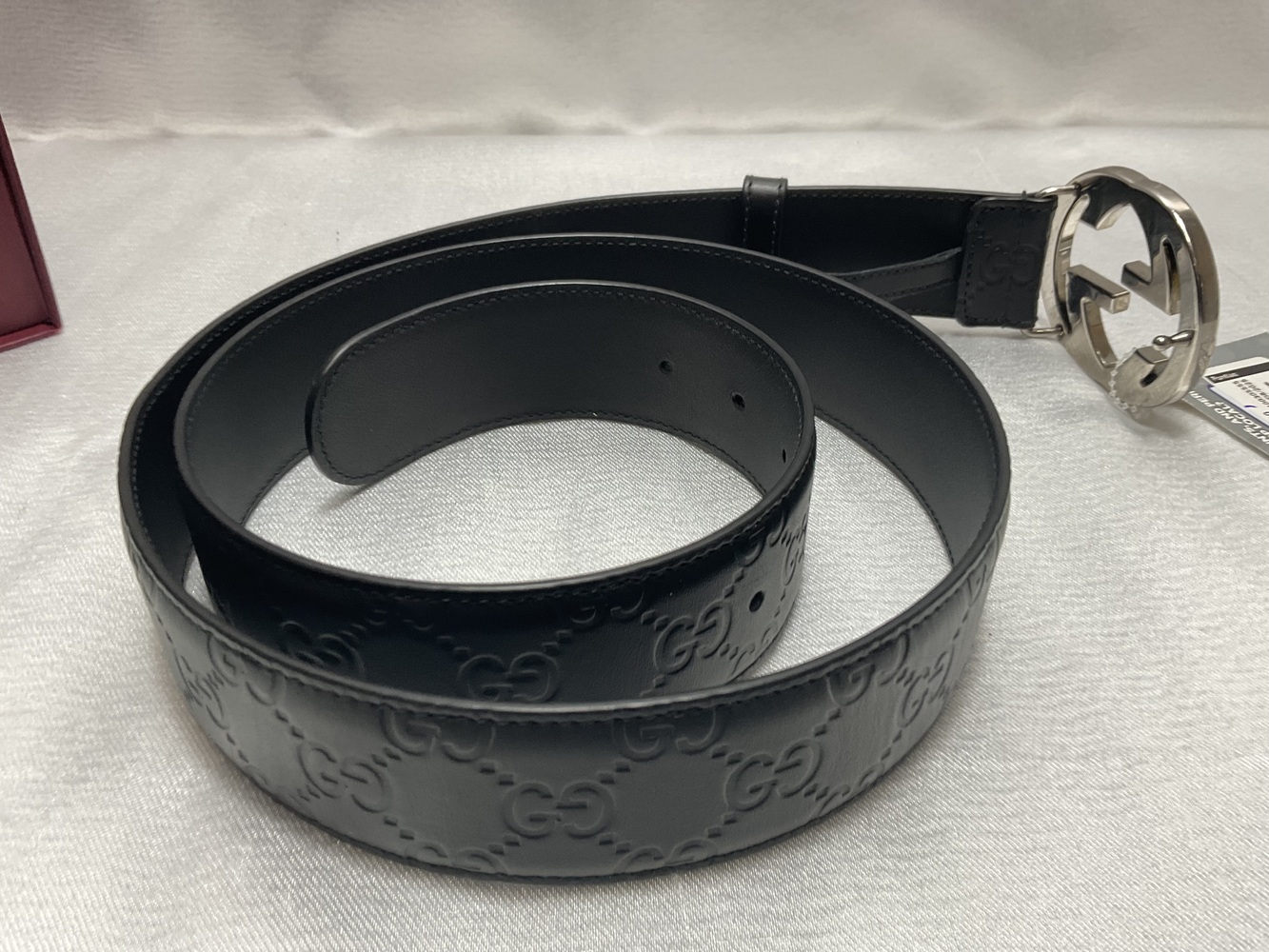 Apparel Belt Gucci Mens Gucci Blk Belt w silver hardware (in red box)