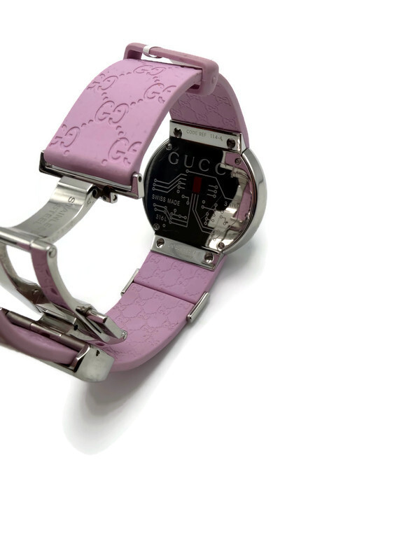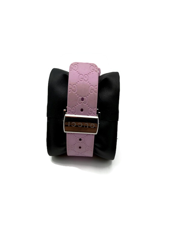 Band: Purple rubber strap with GG logo pattern
