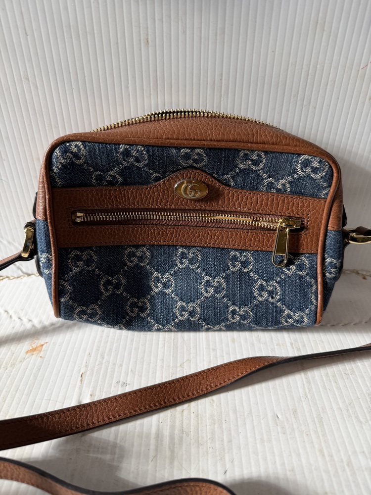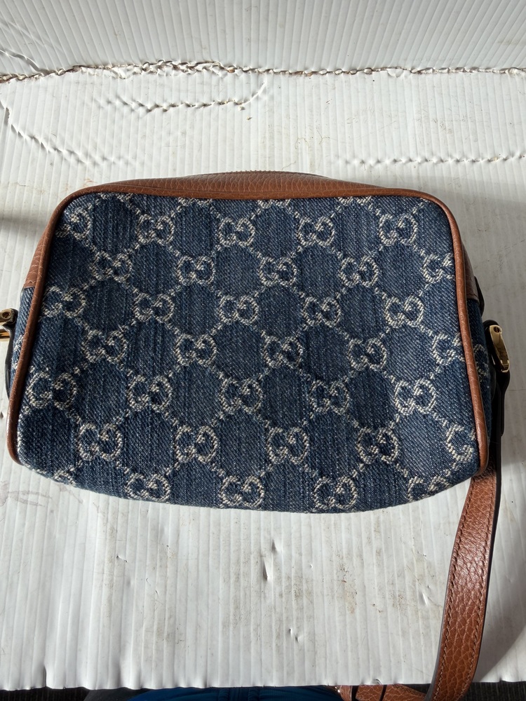 Gucci GG Denim Canvas Crossbody Bag Brown Leather Trim w/ COA – Authentic