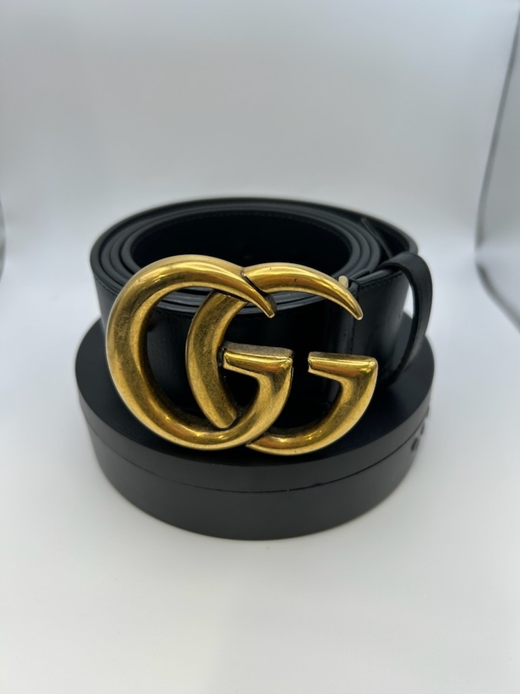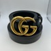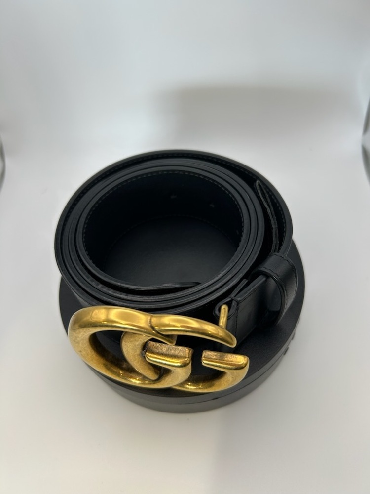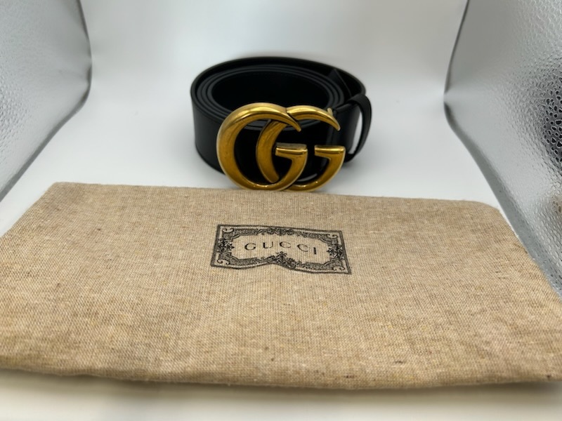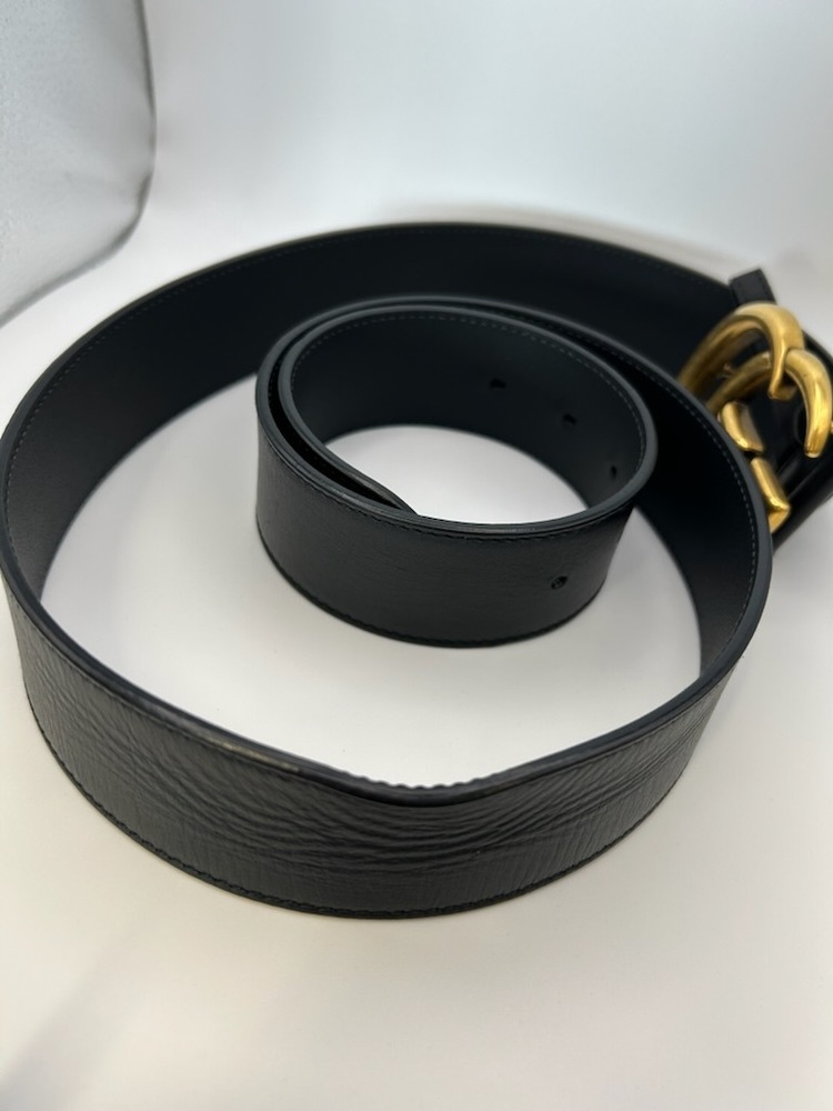 Adorn your waistline with Italian opulence. The GUCCI GG Marmont Belt: a black leather beauty, exuding both elegance and sophistication. Emanate luxury in size 40. The gold GG buckle illuminates this accessory, transforming it to an absolute knockout statement piece.Comes with gucci dust bag.