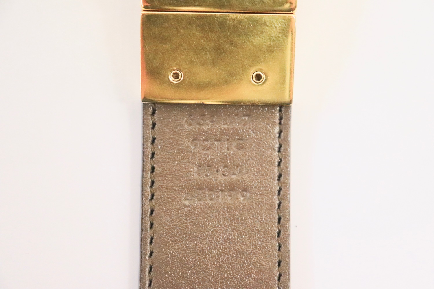 Authentic GUCCI GG monogram women’s belt featuring the iconic interlocking GG gold-tone buckle. A timeless accessory that pairs effortlessly with denim, dresses, or tailored looks. Made in Italy and finished in classic beige GG canvas with smooth brown leather backing.