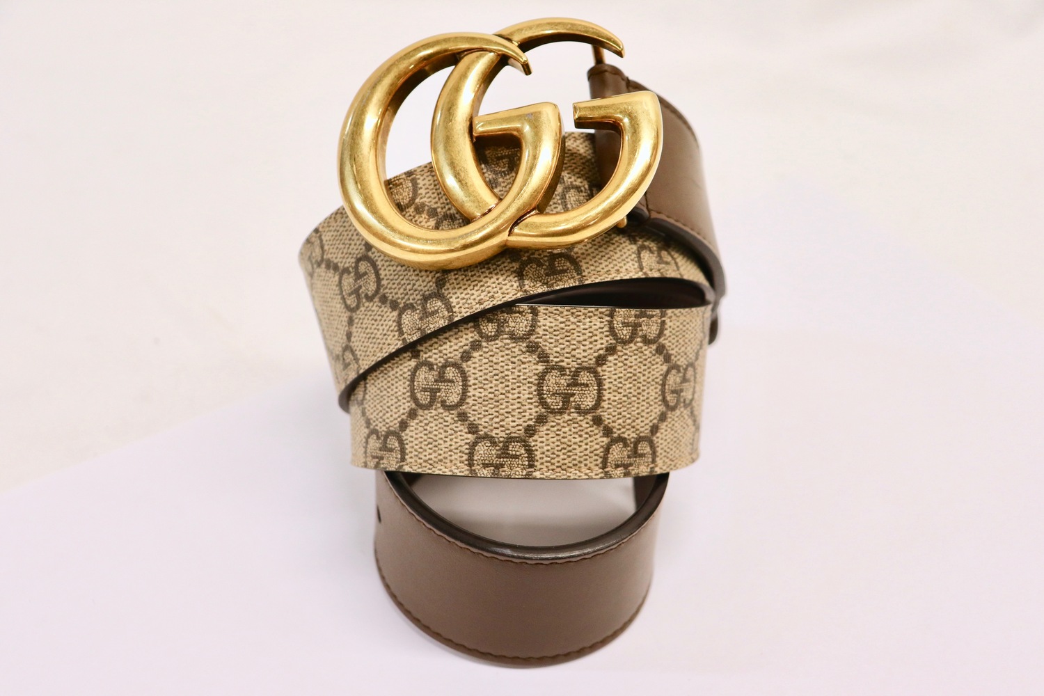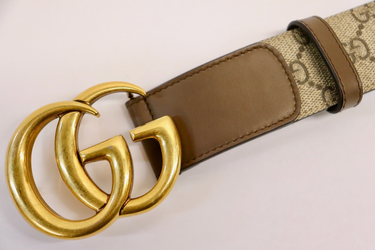 •  Antique gold-tone Double G buckle