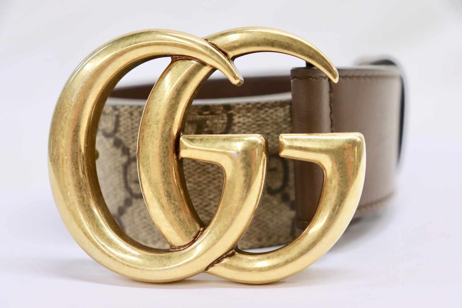 • Antique gold-tone Double G buckle