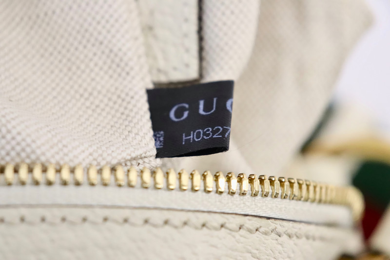 From a few feet away this bag presents beautifully; colorful and structured with bright hardware, but a closer inspection shows typical signs of gentle use, detailed below. Comes complete with Entrupy Certificate of Authenticity, plus the original Gucci care and RFID booklets for added peace of mind.