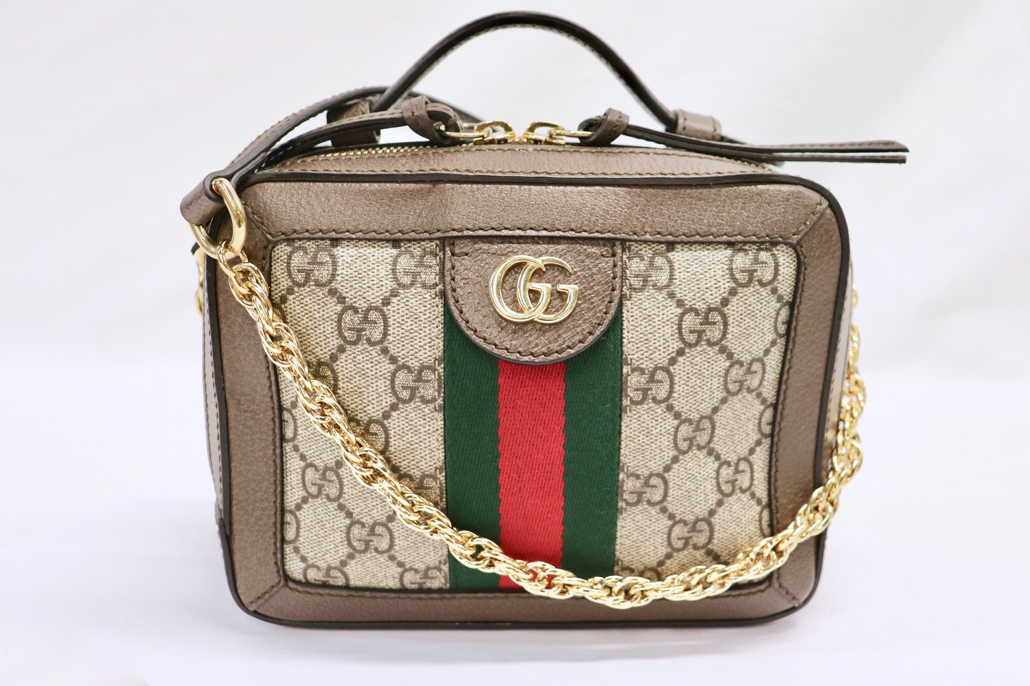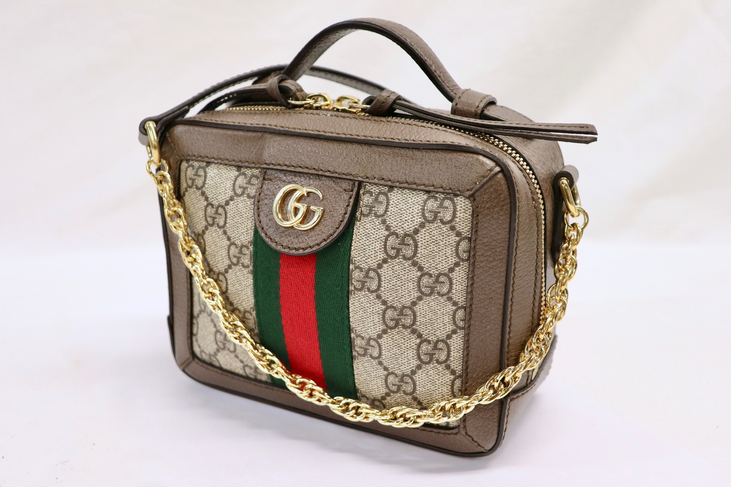 Classic Gucci Ophidia vibes- GG Supreme + Web stripe in a perfectly compact mini.