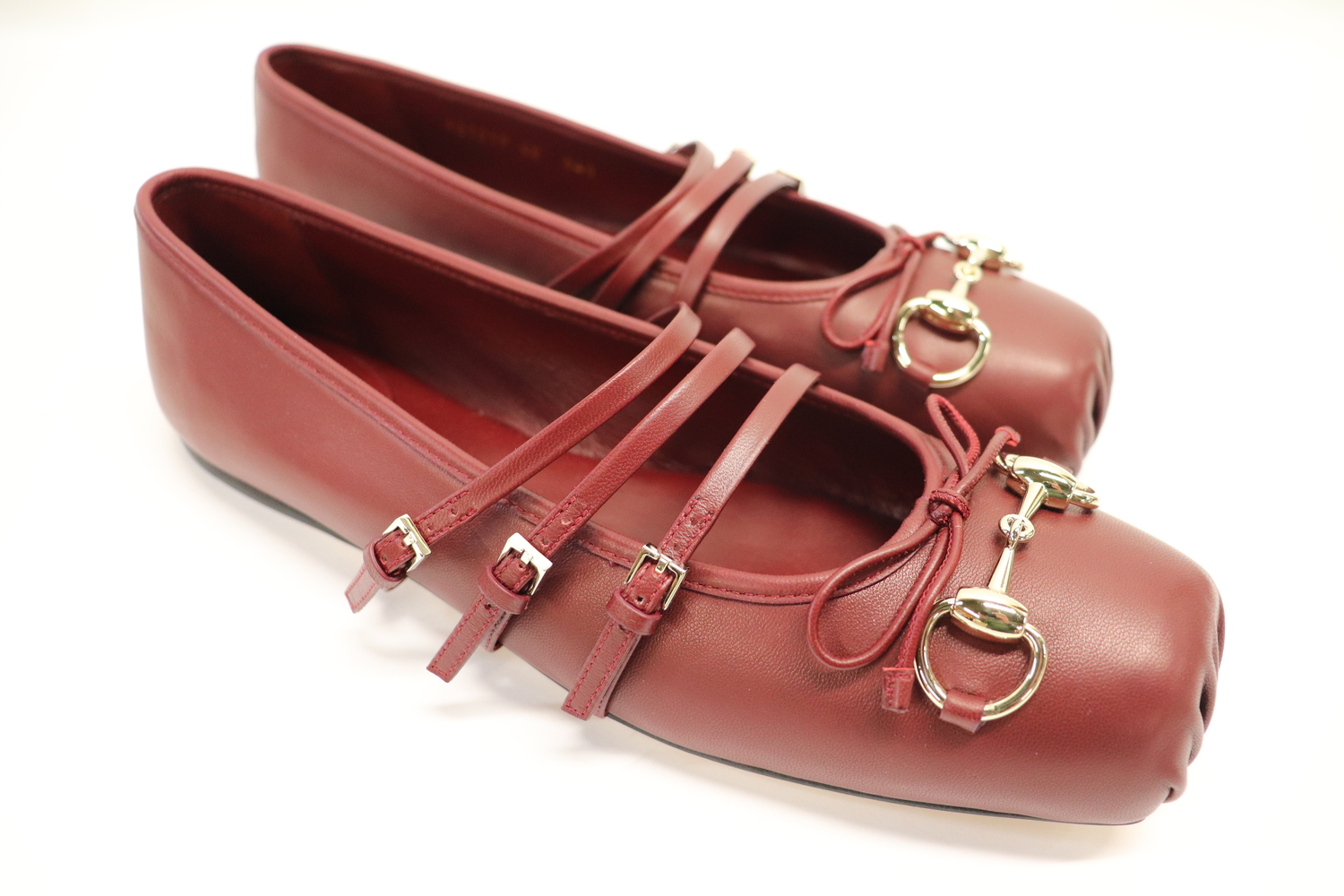Classic horsebit elegance meets ballet grace- red-hot luxury from Italy.