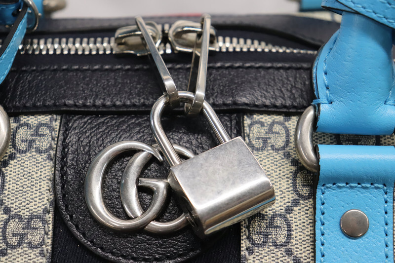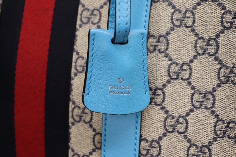 • Material: GG Supreme canvas + leather trim (navy & baby blue)