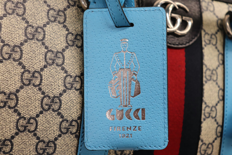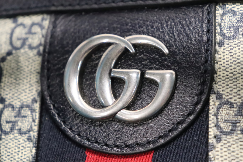 • Material: GG Supreme canvas + leather trim (navy & baby blue)