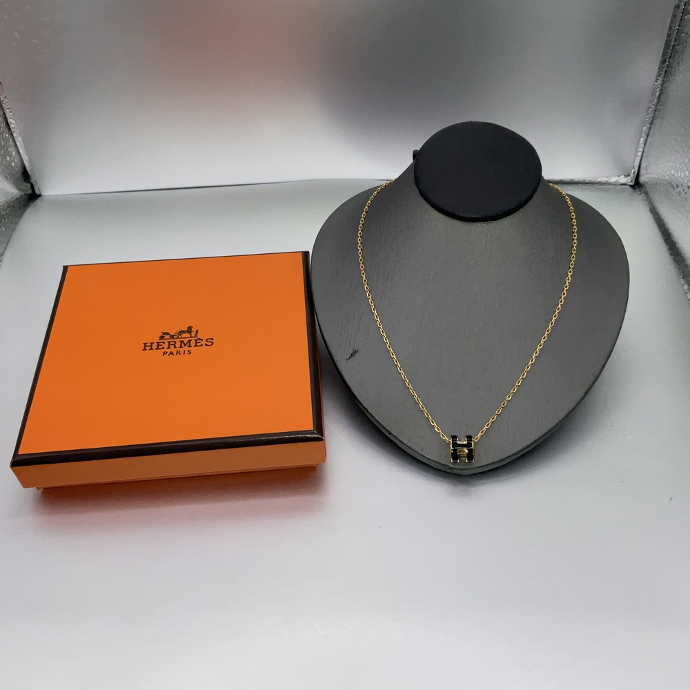 Glamorous Noir Black Enamel HERMES POP H Birkin Necklace comes in the original Hermes box. Limited edition statement accessory, exuding sophistication and style.
