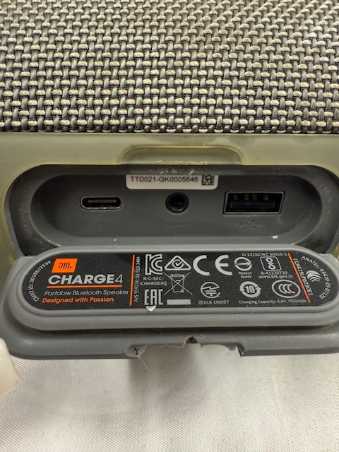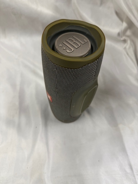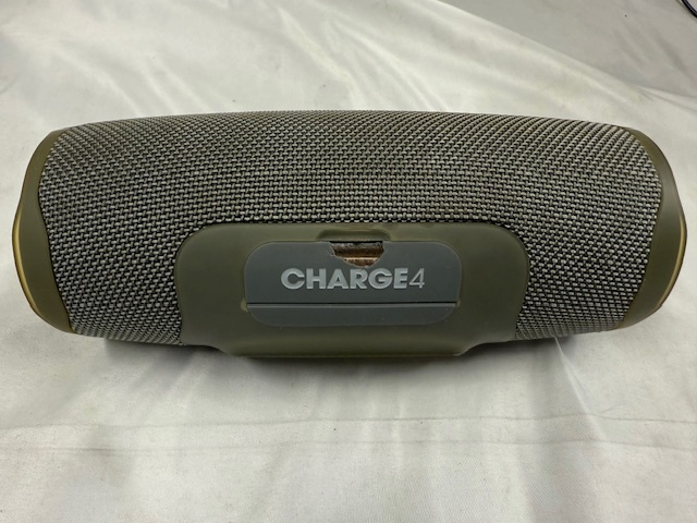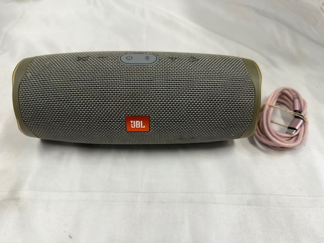 Pre-owned JBL Charge 4 Bluetooth Speaker in grey. Despite minor cosmetic imperfections, it is fully functional, ensuring excellent sound quality. A sturdy and reliable speaker for everyday use.