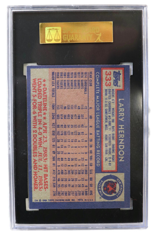 Offered here is a 1984 Topps #333 Larry Herndon baseball card, professionally authenticated and graded by SGC.