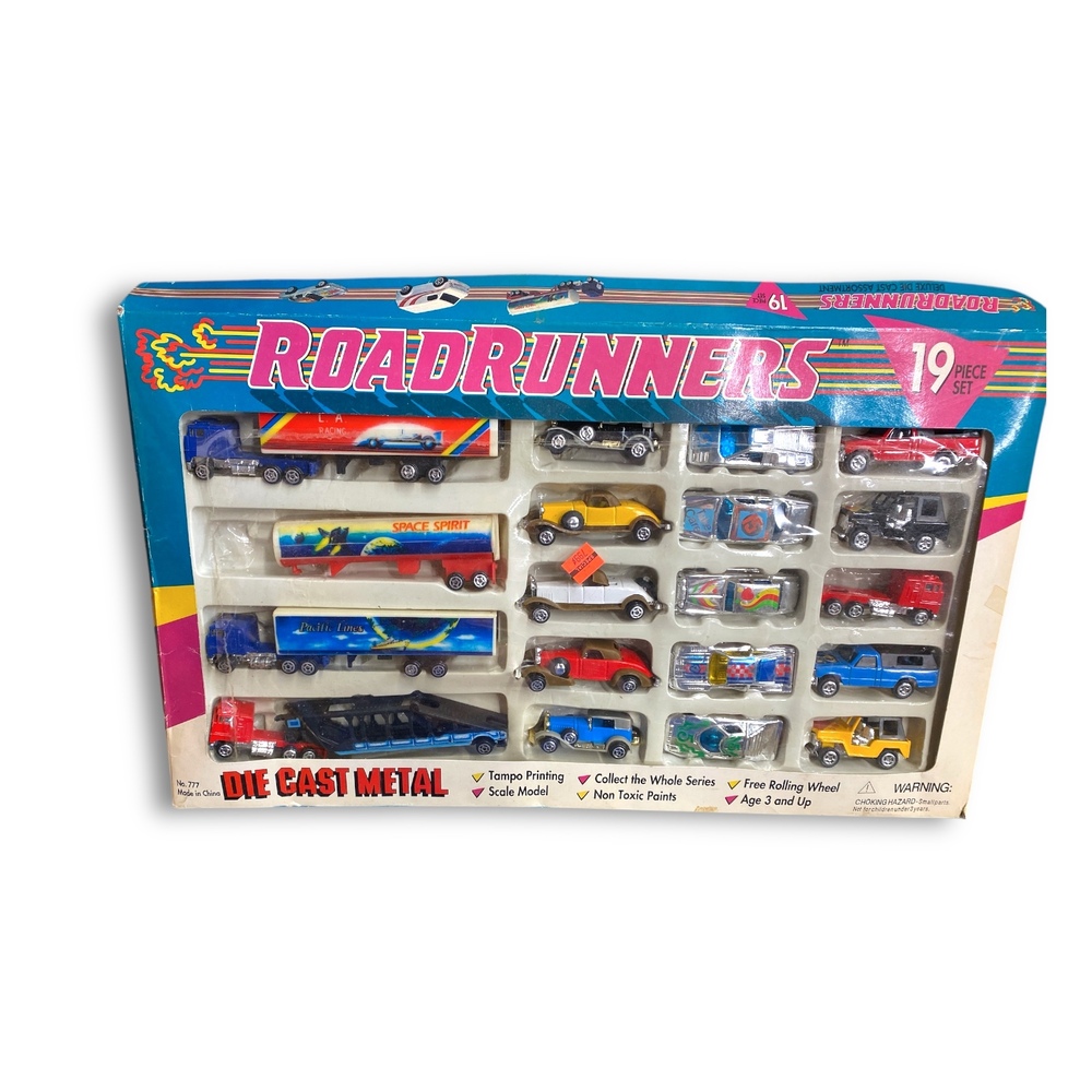 • Roadrunner Die-Cast Car Set – Originally a 19-piece set; one vehicle missing (18 cars included)