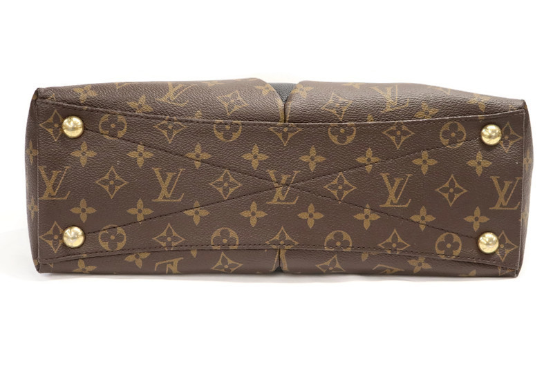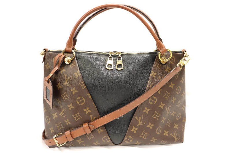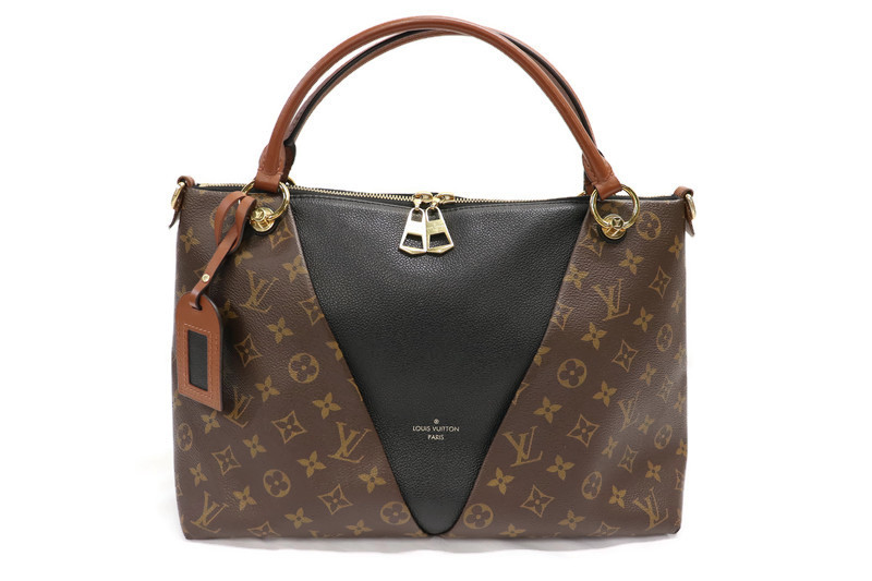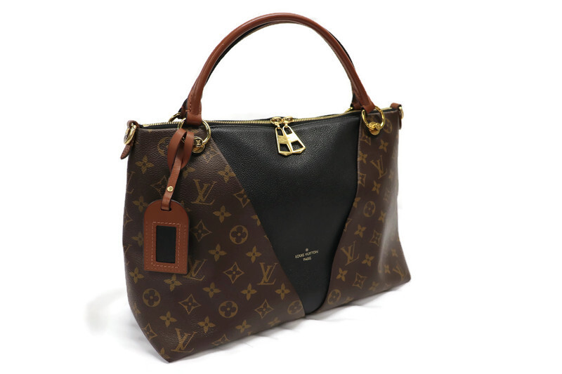 The Louis Vuitton “V” Monogram Tote pairs the house’s iconic Monogram canvas with sleek black leather and refined brown leather trim for a modern, structured look. Spacious yet elegant, it’s the perfect day-to-night companion with top handles and a removable shoulder strap for versatile wear.