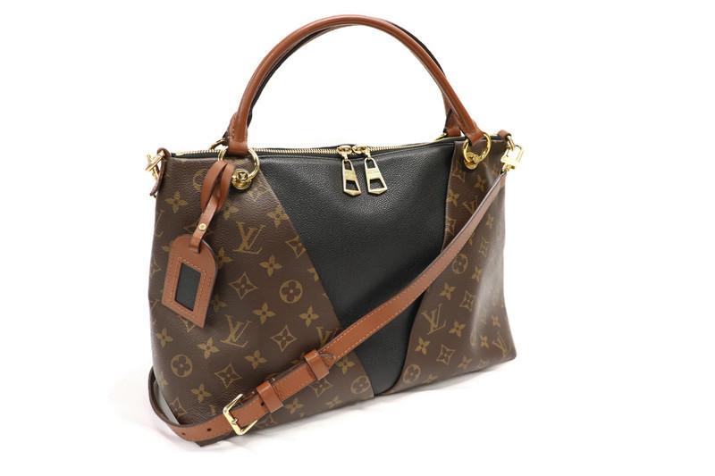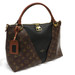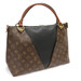 Distinctive LV design- classic Monogram meets bold black “V” statement.