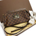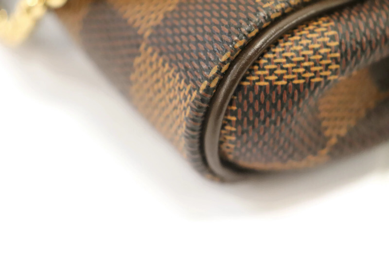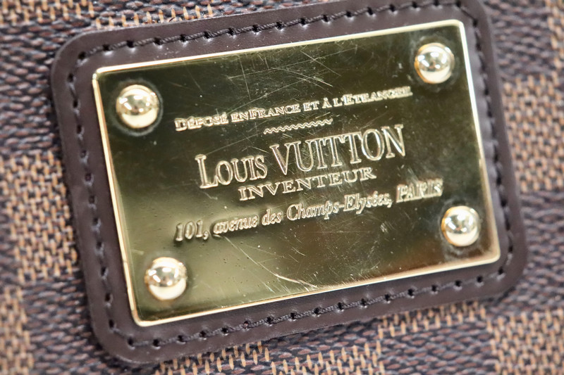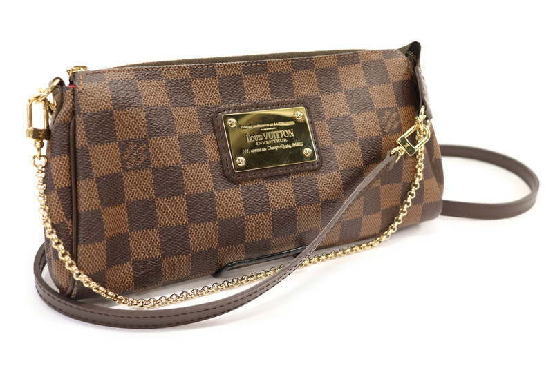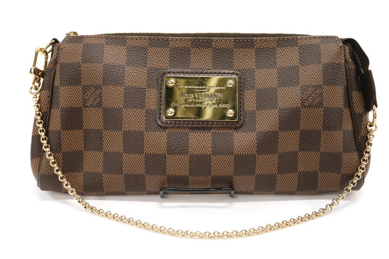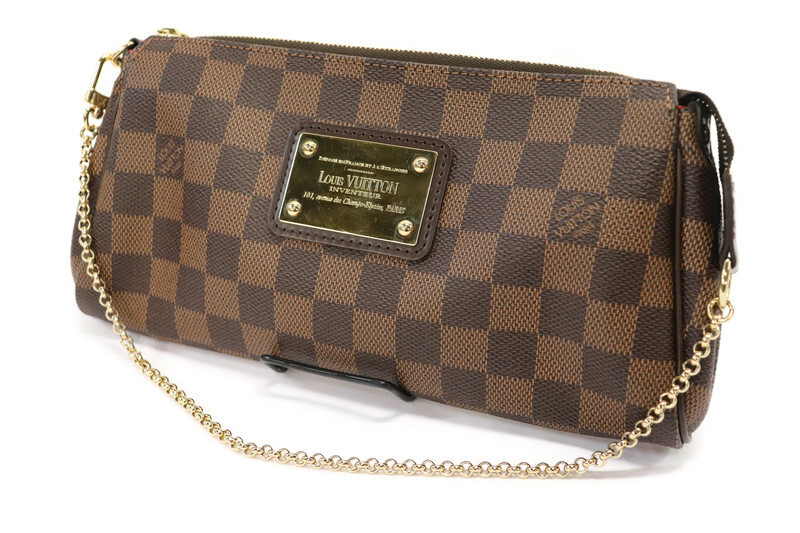 The Louis Vuitton Eva Clutch in Damier Ebene (Style N55213) is a discontinued favorite that blends timeless elegance with modern versatility. Crafted from signature Damier Ebene coated canvas with smooth leather trim, it features a gleaming Inventeur plate, gold-tone chain handle, and detachable leather strap for shoulder or crossbody wear.