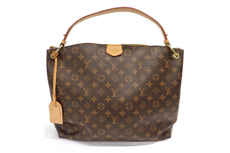 The Louis Vuitton Graceful MM in monogram coated canvas is the perfect blend of luxury and practicality. Lightweight, spacious, and designed for everyday wear, it features the iconic LV canvas paired with rich brown leather trim and gleaming gold-tone hardware.