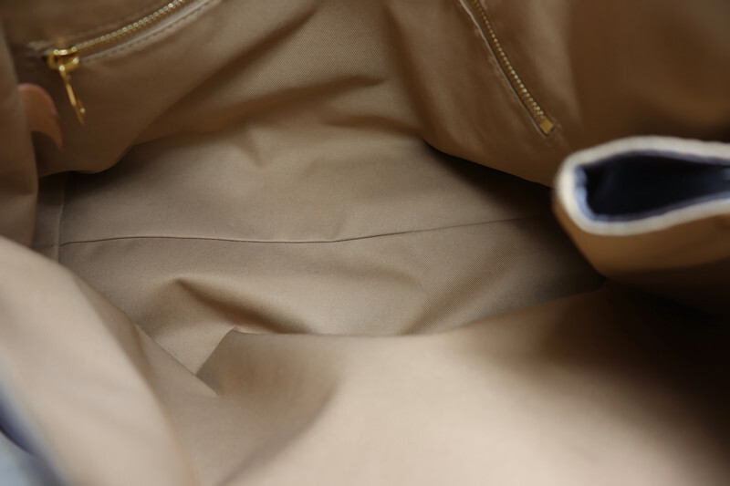 • Interior: Beige textile lining clean overall; light darkening on top edges, no major stains